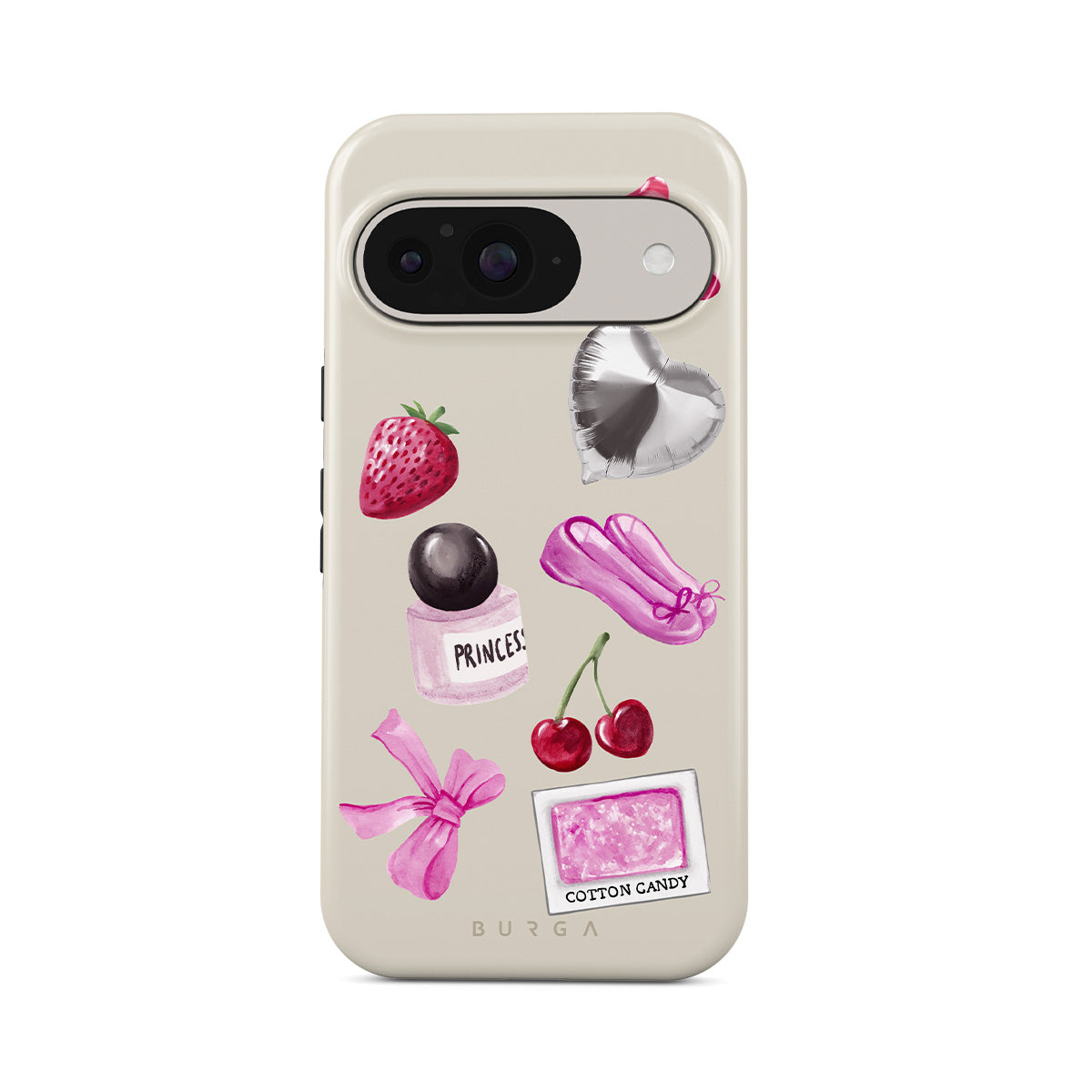 Den här stilen har: rosa rosett, silverfärgad hjärtformad ballong, parfymflaska, jordgubbe, körsbär, rosa balettskor, sockervadd-klistermärke, rosa gummibjörn.