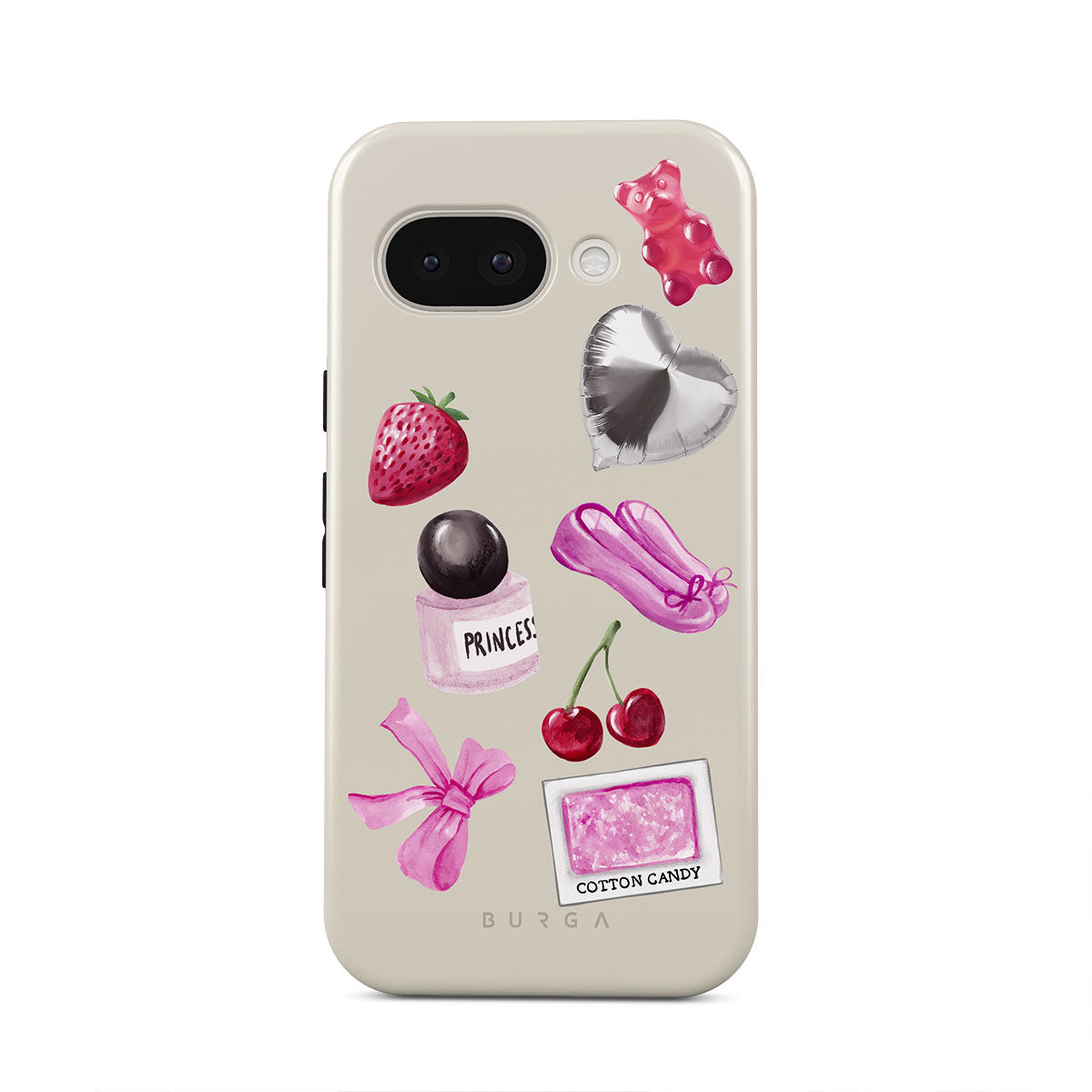 Den här stilen har: rosa rosett, silverfärgad hjärtformad ballong, parfymflaska, jordgubbe, körsbär, rosa balettskor, sockervadd-klistermärke, rosa gummibjörn.