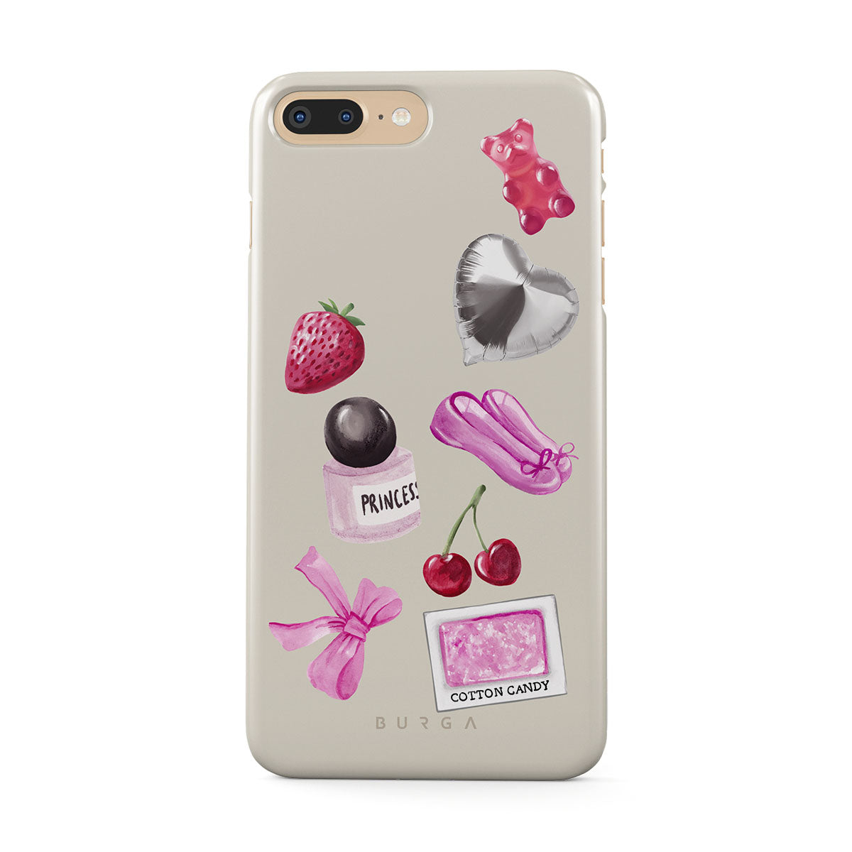 Den här stilen har: rosa rosett, silverfärgad hjärtformad ballong, parfymflaska, jordgubbe, körsbär, rosa balettskor, sockervadd-klistermärke, rosa gummibjörn.