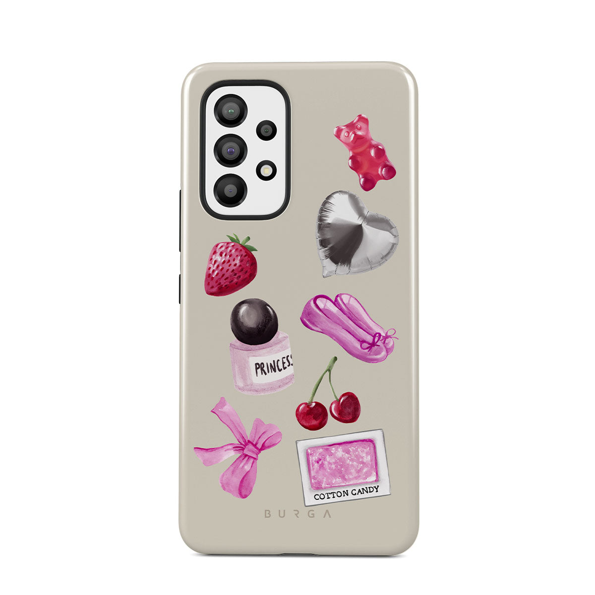 Den här stilen har: rosa rosett, silverfärgad hjärtformad ballong, parfymflaska, jordgubbe, körsbär, rosa balettskor, sockervadd-klistermärke, rosa gummibjörn.