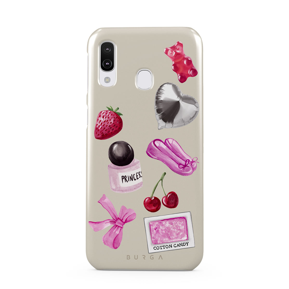 Den här stilen har: rosa rosett, silverfärgad hjärtformad ballong, parfymflaska, jordgubbe, körsbär, rosa balettskor, sockervadd-klistermärke, rosa gummibjörn.