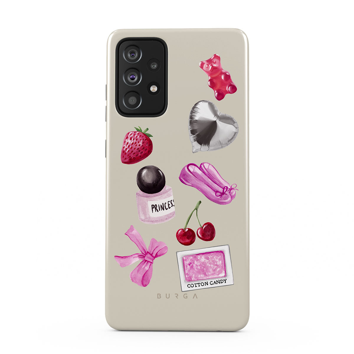 Den här stilen har: rosa rosett, silverfärgad hjärtformad ballong, parfymflaska, jordgubbe, körsbär, rosa balettskor, sockervadd-klistermärke, rosa gummibjörn.