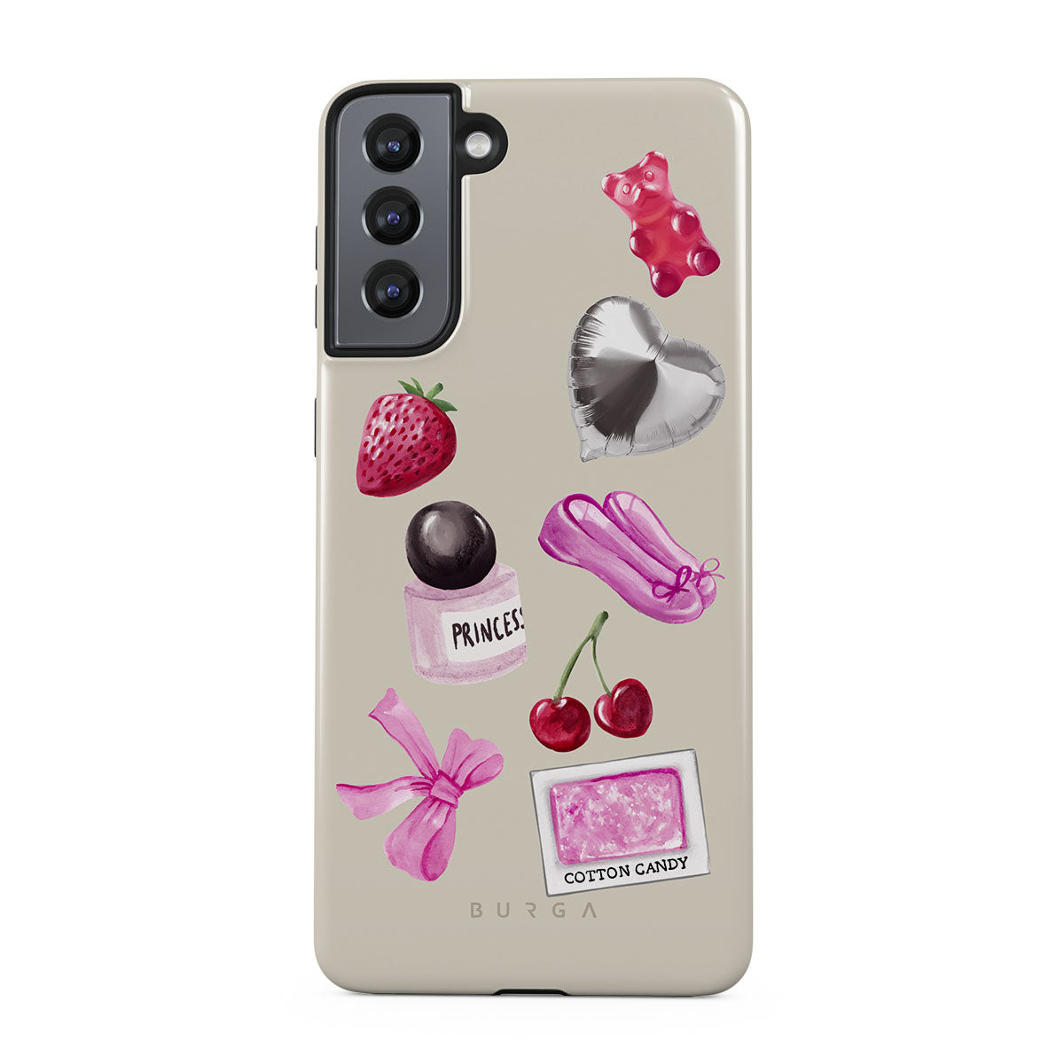 Den här stilen har: rosa rosett, silverfärgad hjärtformad ballong, parfymflaska, jordgubbe, körsbär, rosa balettskor, sockervadd-klistermärke, rosa gummibjörn.