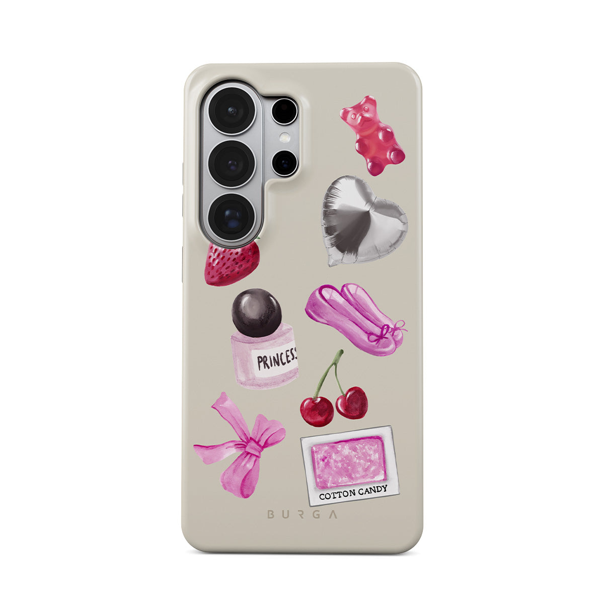 Den här stilen har: rosa rosett, silverfärgad hjärtformad ballong, parfymflaska, jordgubbe, körsbär, rosa balettskor, sockervadd-klistermärke, rosa gummibjörn.