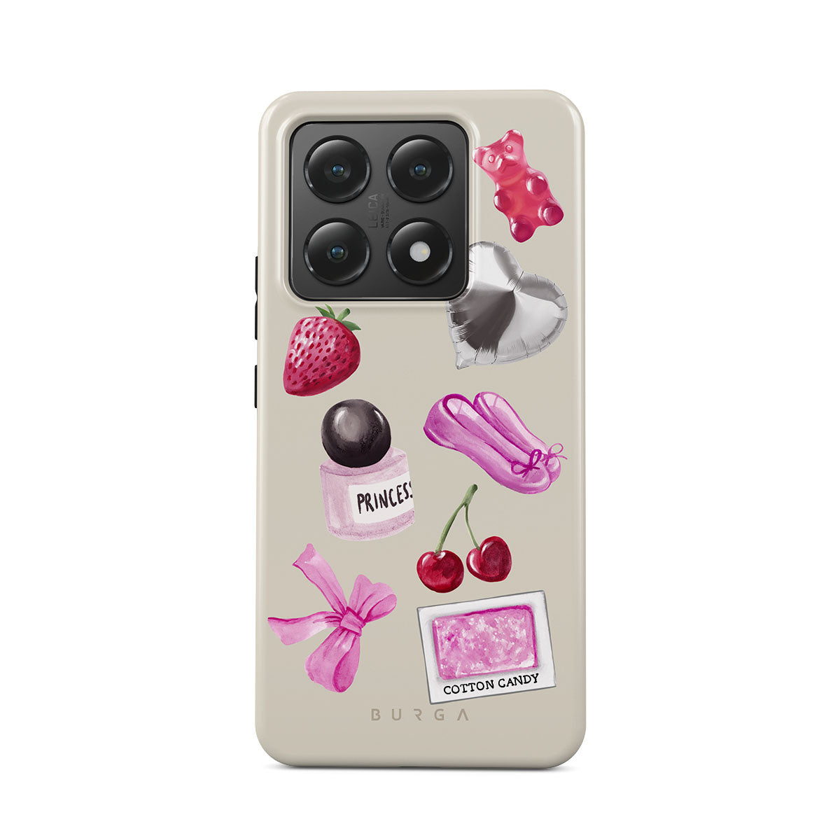 Den här stilen har: rosa rosett, silverfärgad hjärtformad ballong, parfymflaska, jordgubbe, körsbär, rosa balettskor, sockervadd-klistermärke, rosa gummibjörn.
