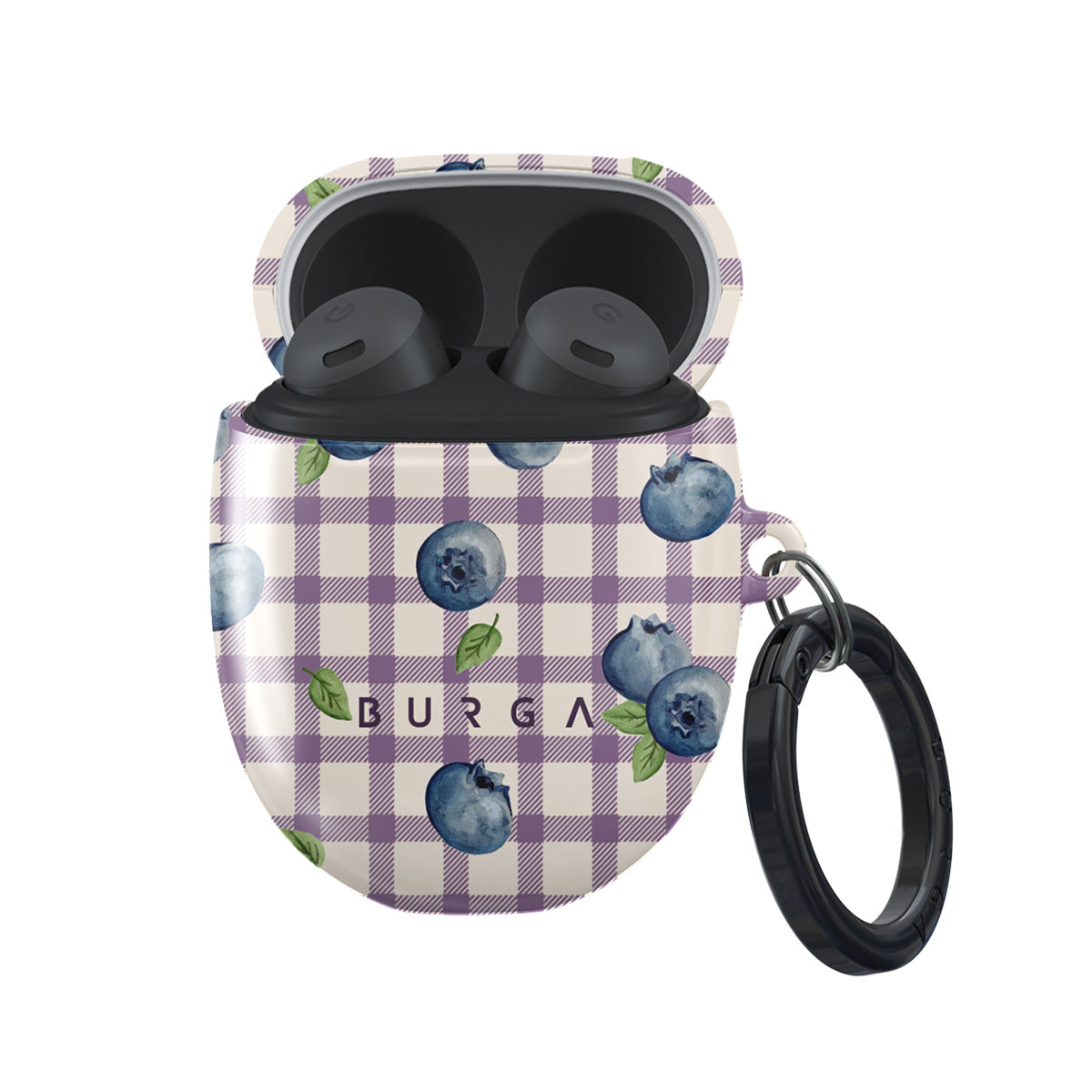 Denna design har: blåbär, gingham, rutmönster, fruktillustrationer