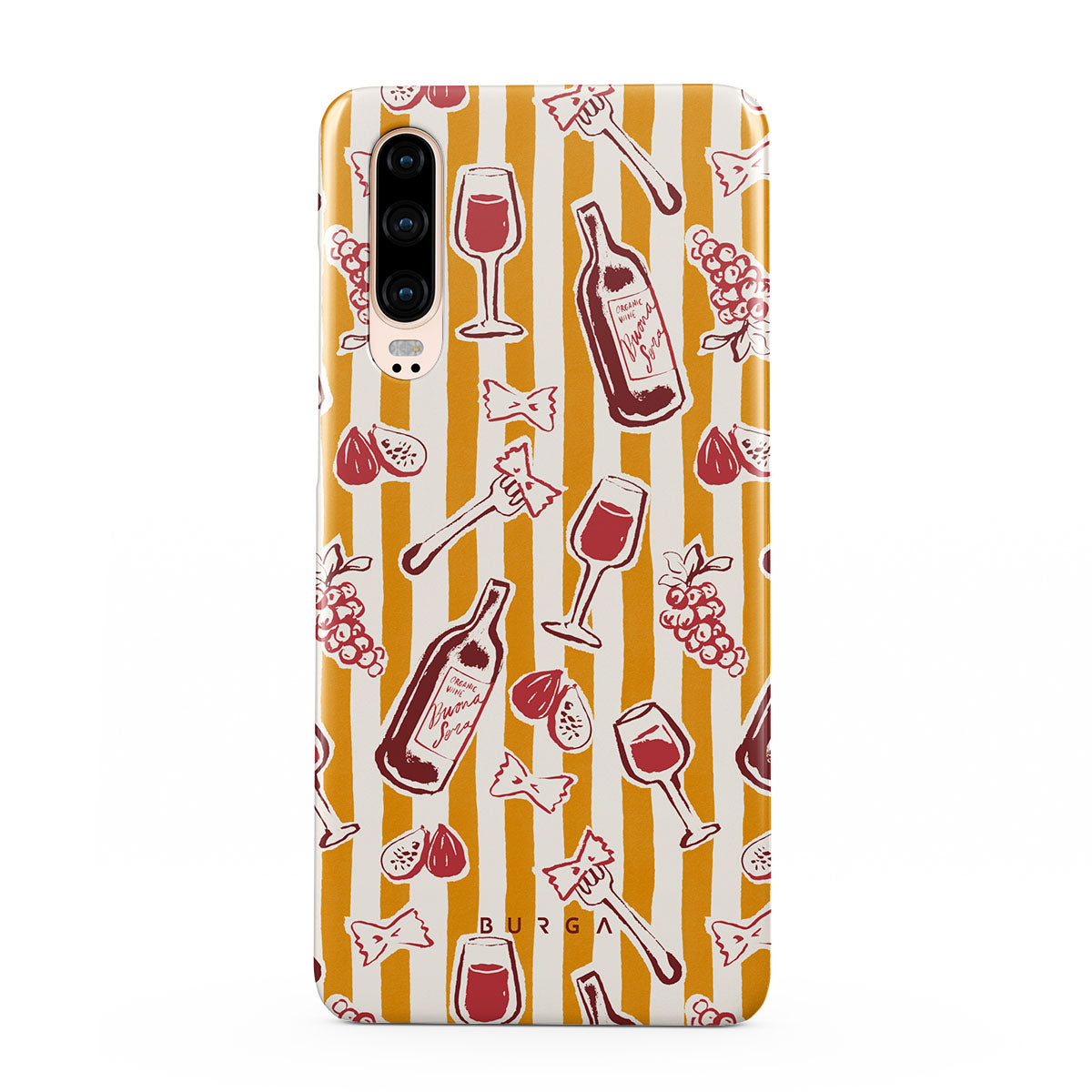 Obs! Designen är tryckt – inte texturerad eller upphöjd.Den här stilen har: frukt, fikon, druvor, gafflar, pasta, vin, glas, ränder.