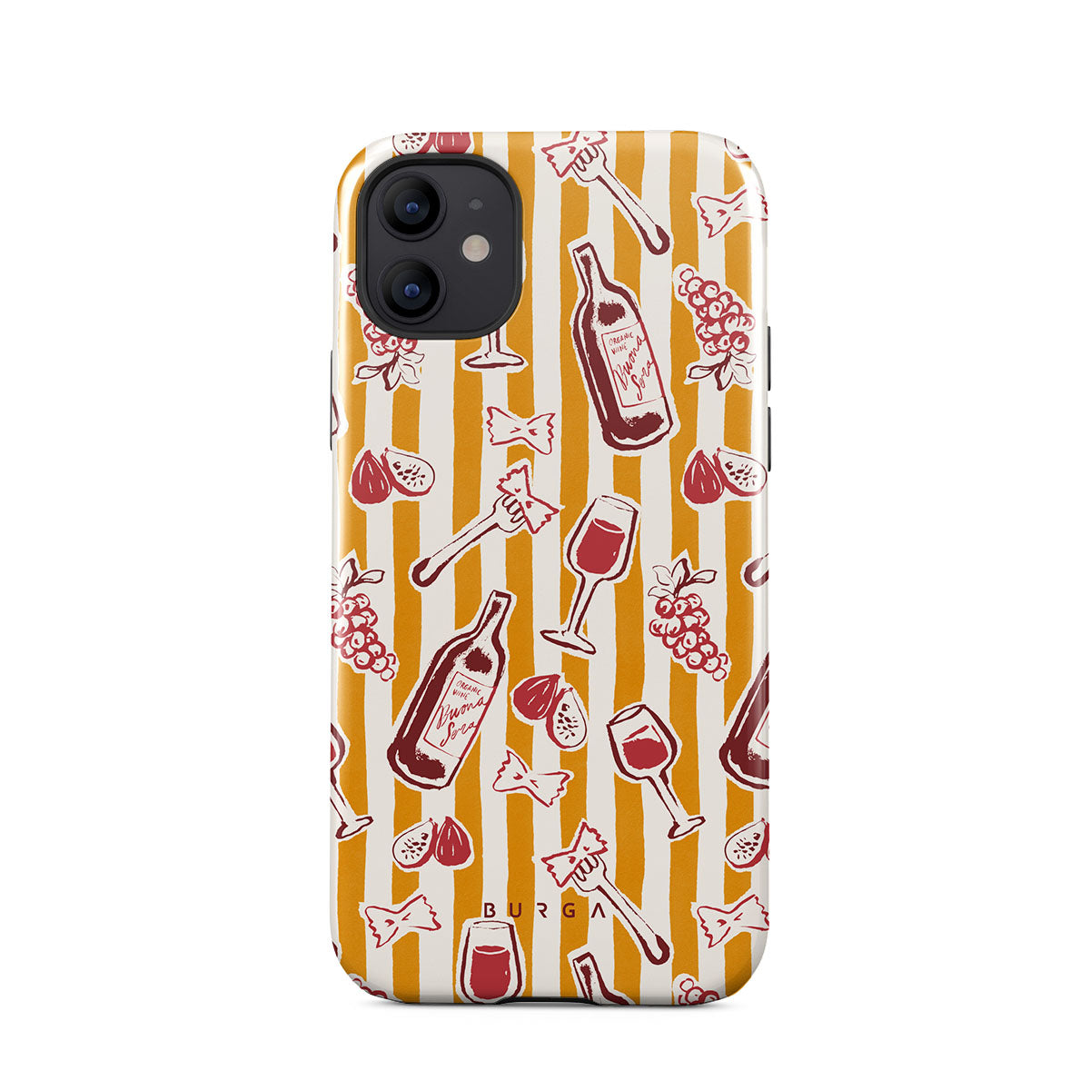 Den här stilen har: frukt, fikon, druvor, gafflar, pasta, vin, glas, ränder.