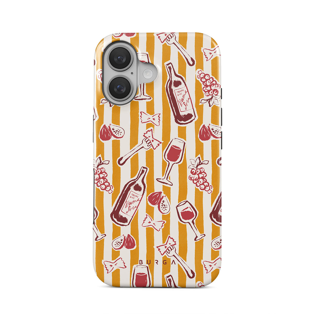 Den här stilen har: frukt, fikon, druvor, gafflar, pasta, vin, glas, ränder.