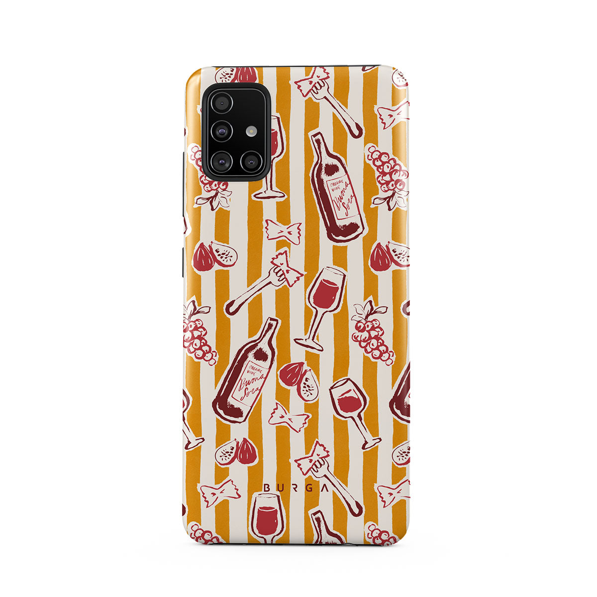 Obs! Designen är tryckt – inte texturerad eller upphöjd.Den här stilen har: frukt, fikon, druvor, gafflar, pasta, vin, glas, ränder.
