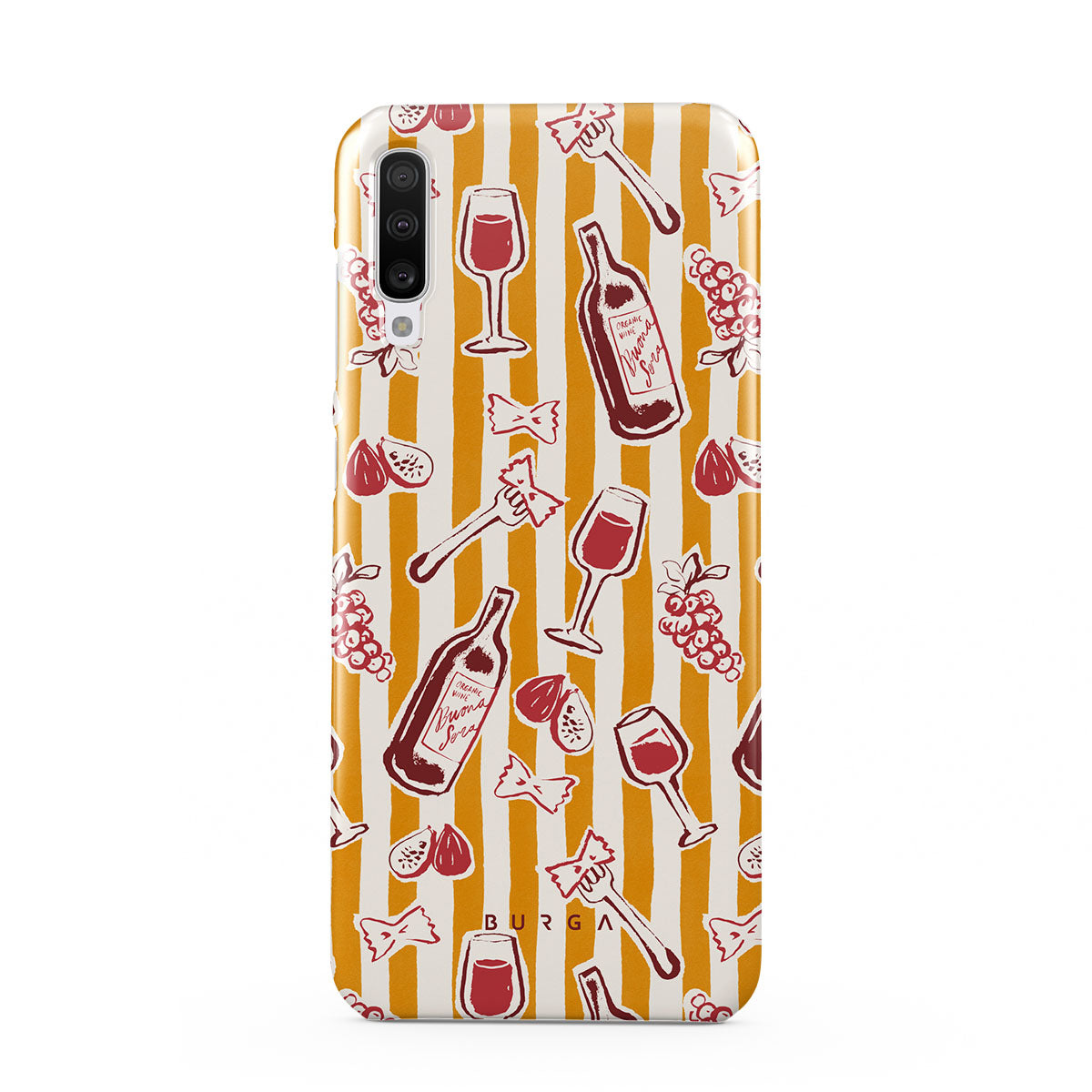 Obs! Designen är tryckt – inte texturerad eller upphöjd.Den här stilen har: frukt, fikon, druvor, gafflar, pasta, vin, glas, ränder.
