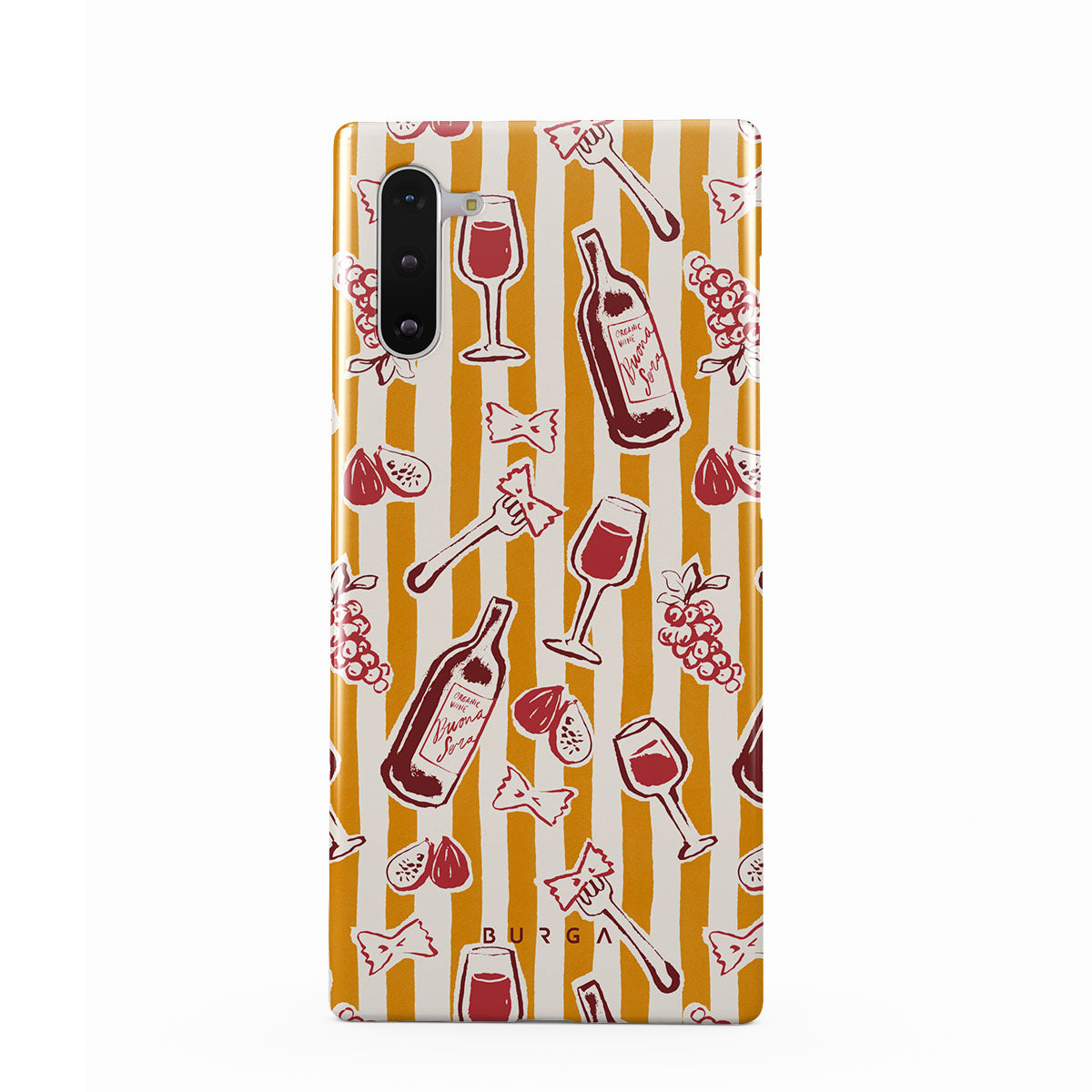 Obs! Designen är tryckt – inte texturerad eller upphöjd.Den här stilen har: frukt, fikon, druvor, gafflar, pasta, vin, glas, ränder.