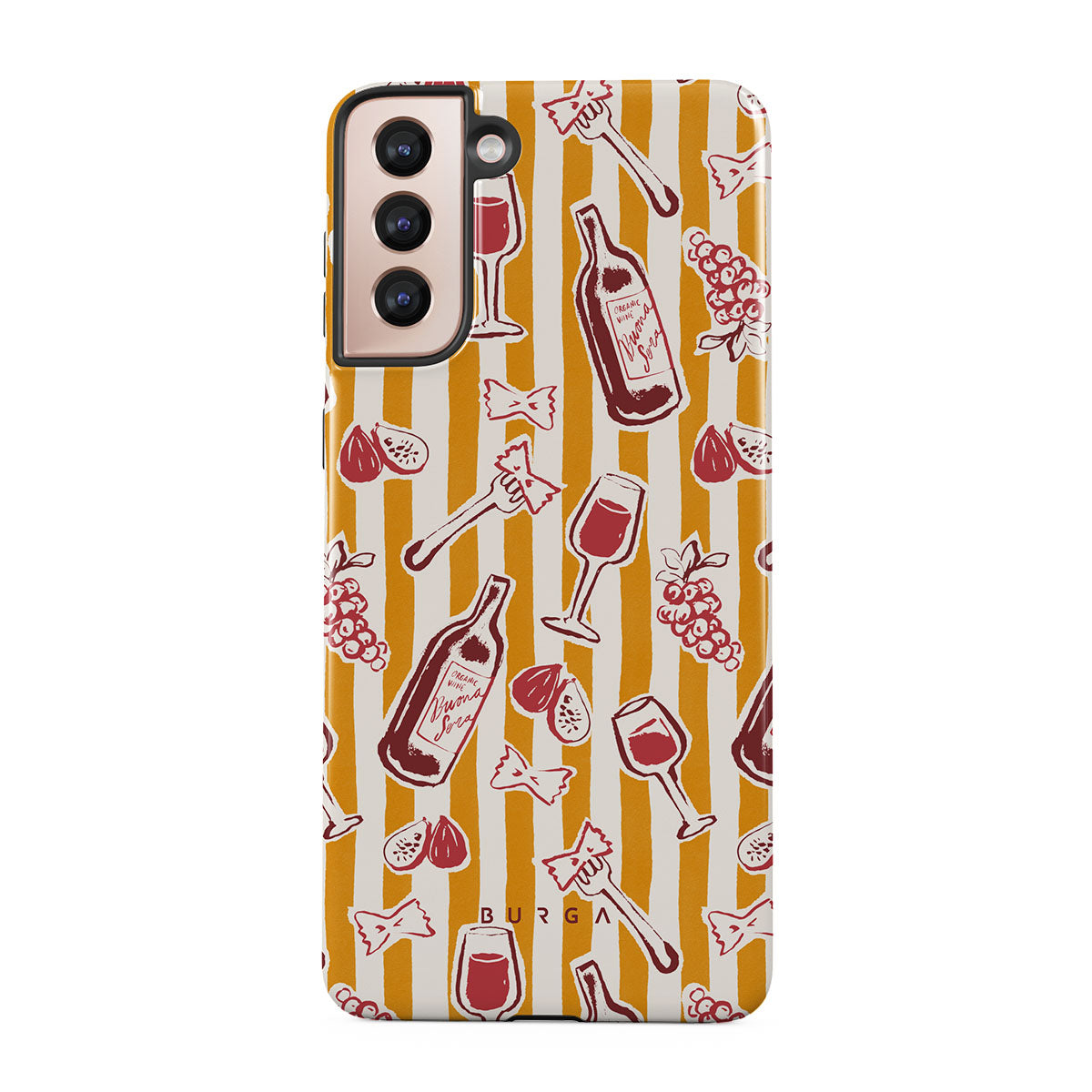 Den här stilen har: frukt, fikon, druvor, gafflar, pasta, vin, glas, ränder.