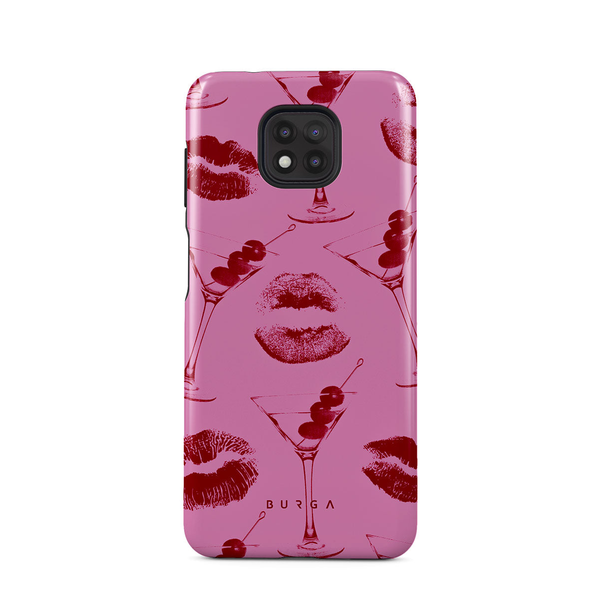Denna design har: röda läppar, kyssar, cocktailglas, martinis.