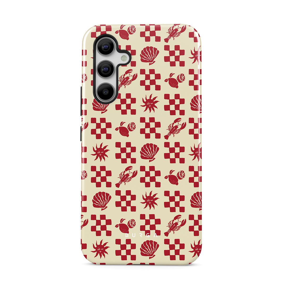 Den här stilen har: Röd rutigt mönster, snäckor, hummer, italienska motiv.