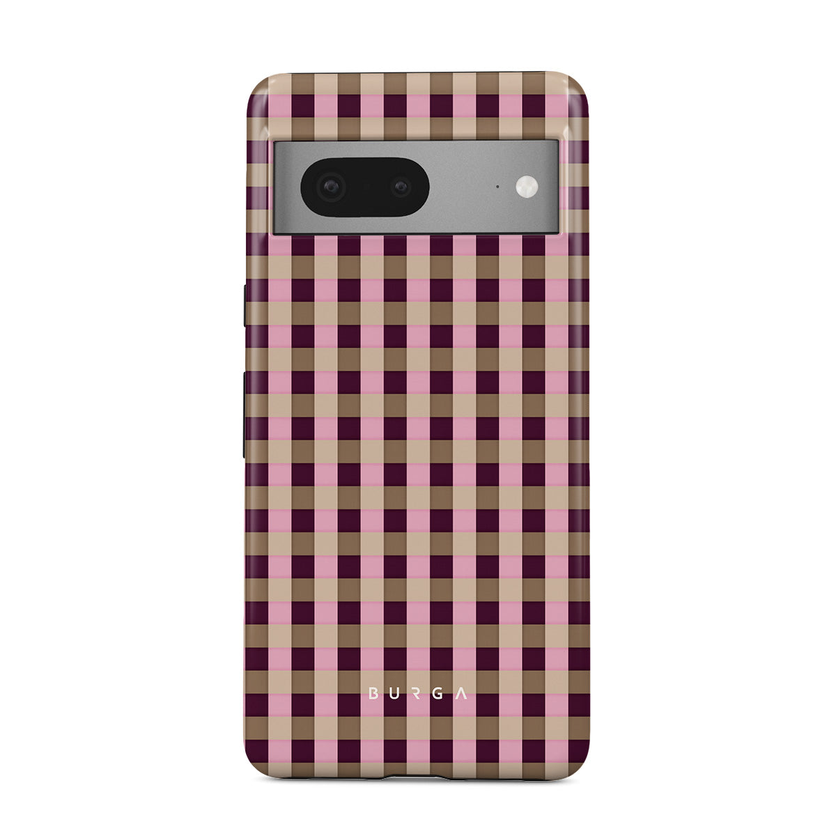Den här stilen har: ett rosa och vinrött rutmönster i modern stil.