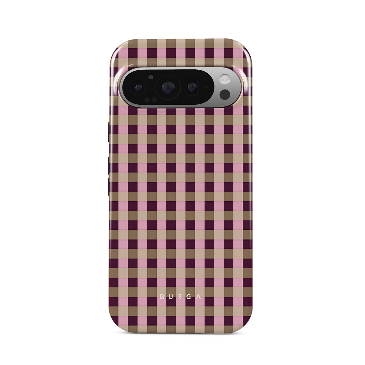 Den här stilen har: ett rosa och vinrött rutmönster i modern stil.