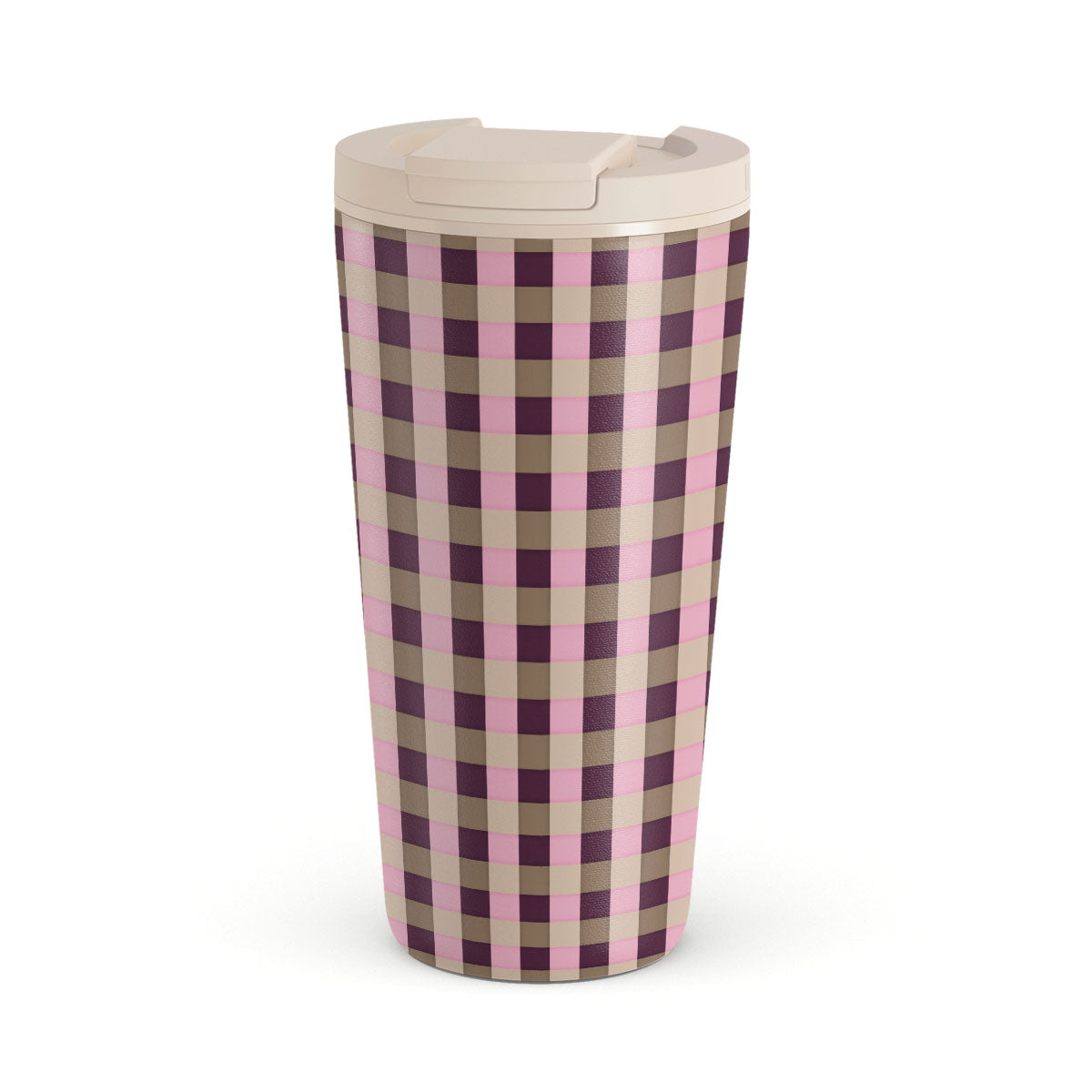 Den här stilen har: ett rosa och vinrött rutmönster i modern stil.