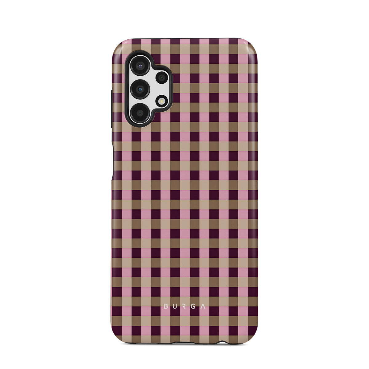 Den här stilen har: ett rosa och vinrött rutmönster i modern stil.