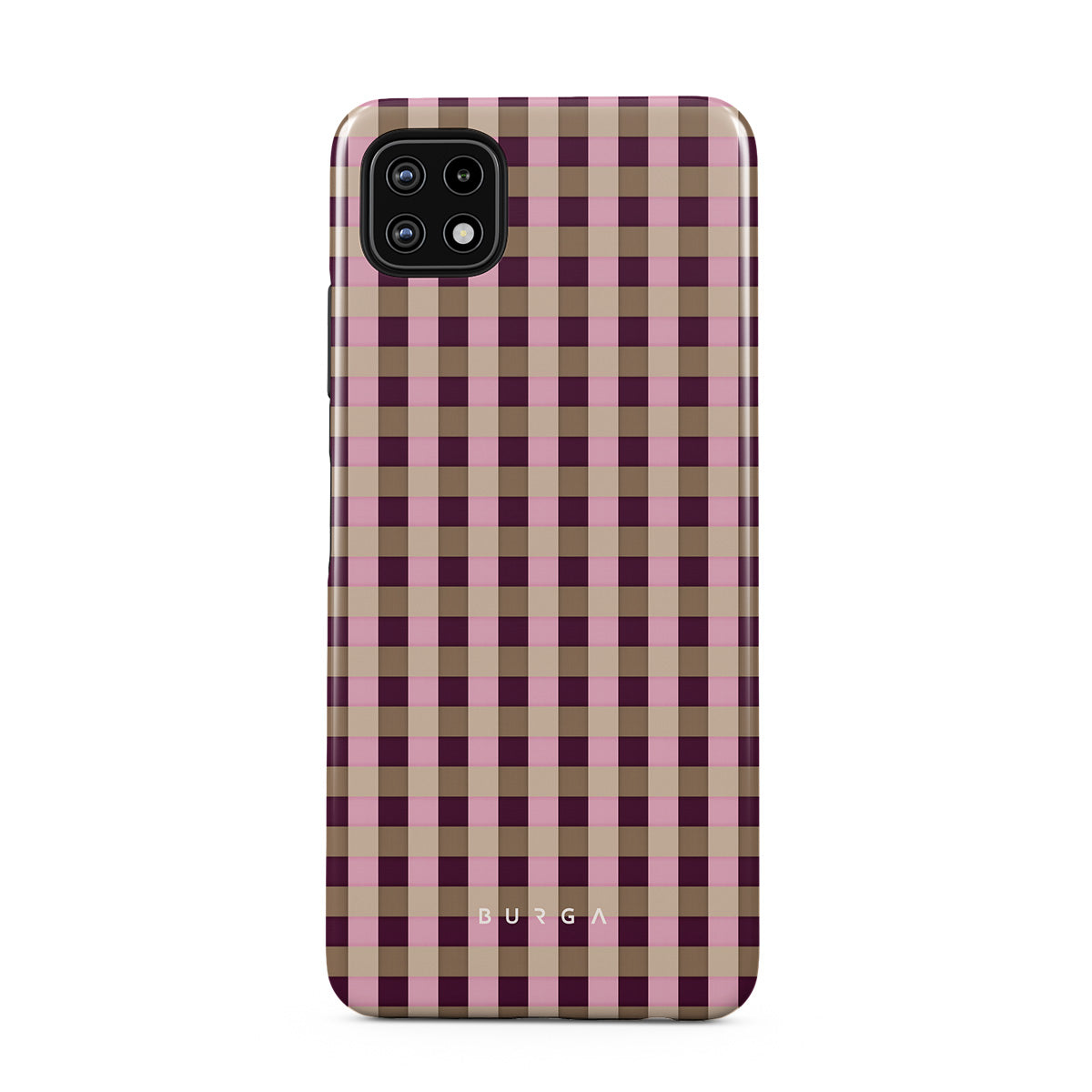 Den här stilen har: ett rosa och vinrött rutmönster i modern stil.