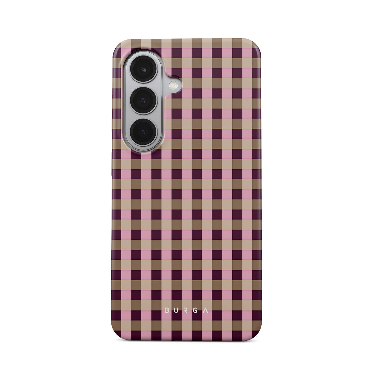 Den här stilen har: ett rosa och vinrött rutmönster i modern stil.