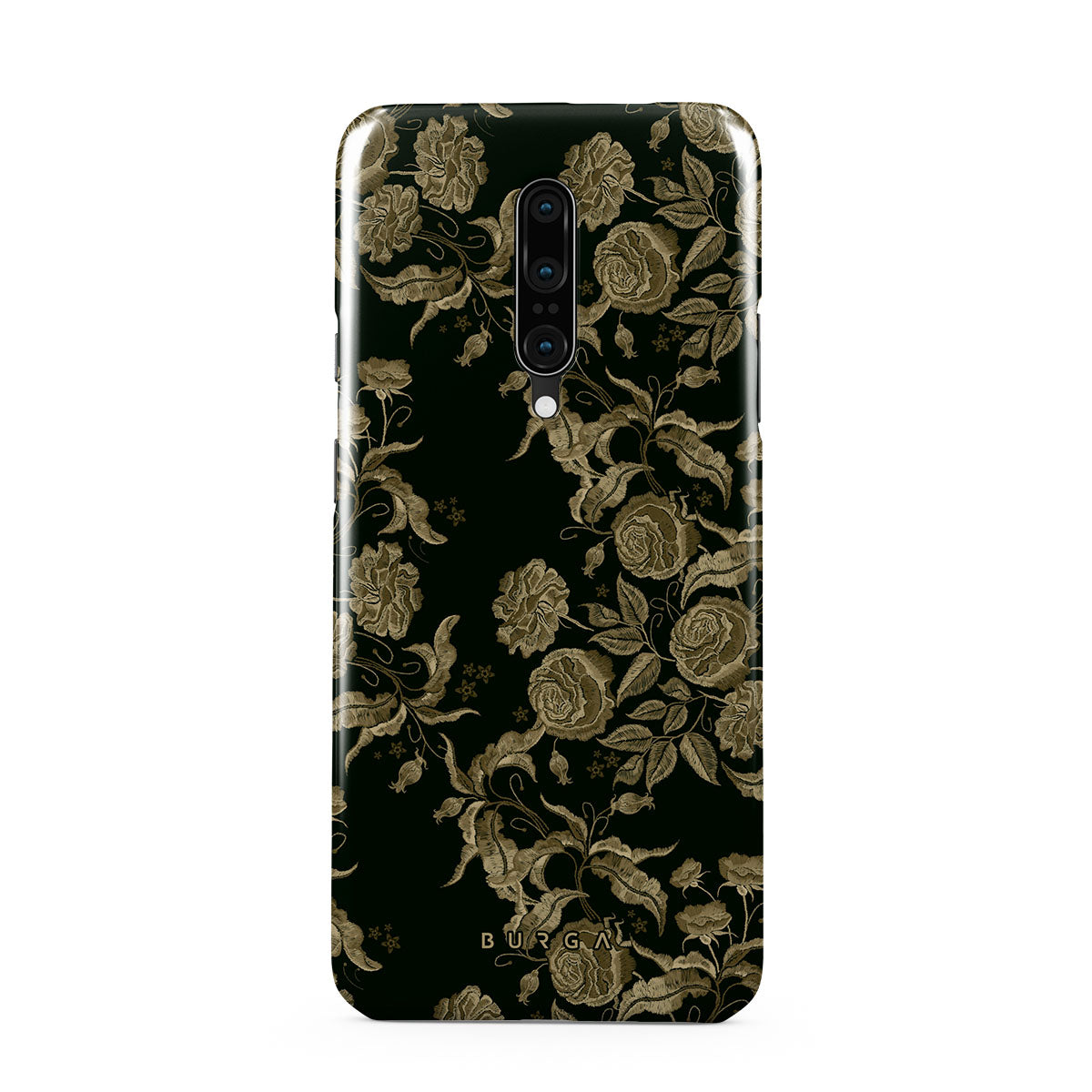 Den här designen har: vintage rosor, gyllene bladverk, djupa gröna toner.
