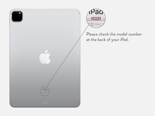 Du hittar ditt A**** modellnummer tryckt på baksidan av din iPad