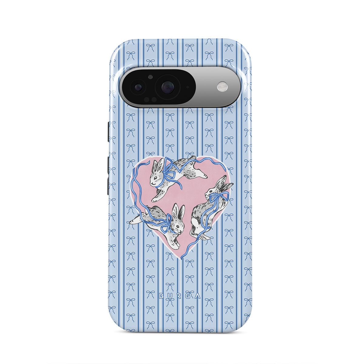 Den här stilen har: vita kaniner, hjärtram, blå ränder