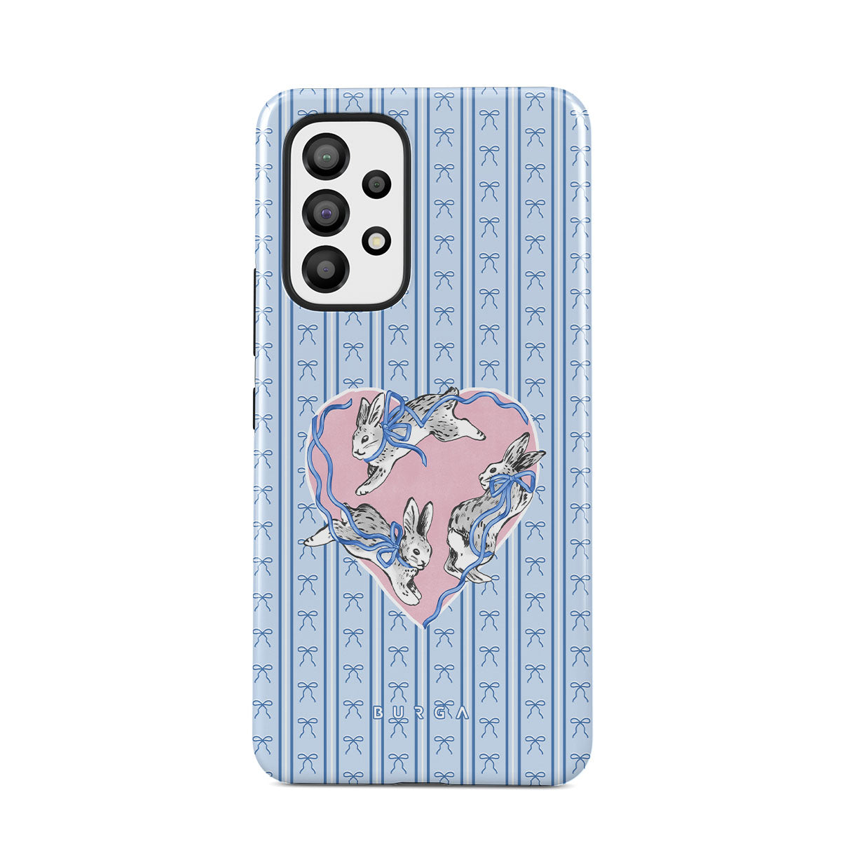 Den här stilen har: vita kaniner, hjärtram, blå ränder