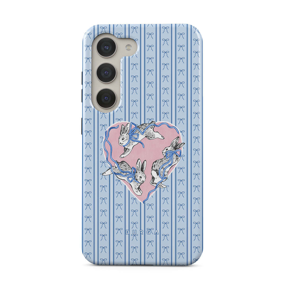 Den här stilen har: vita kaniner, hjärtram, blå ränder