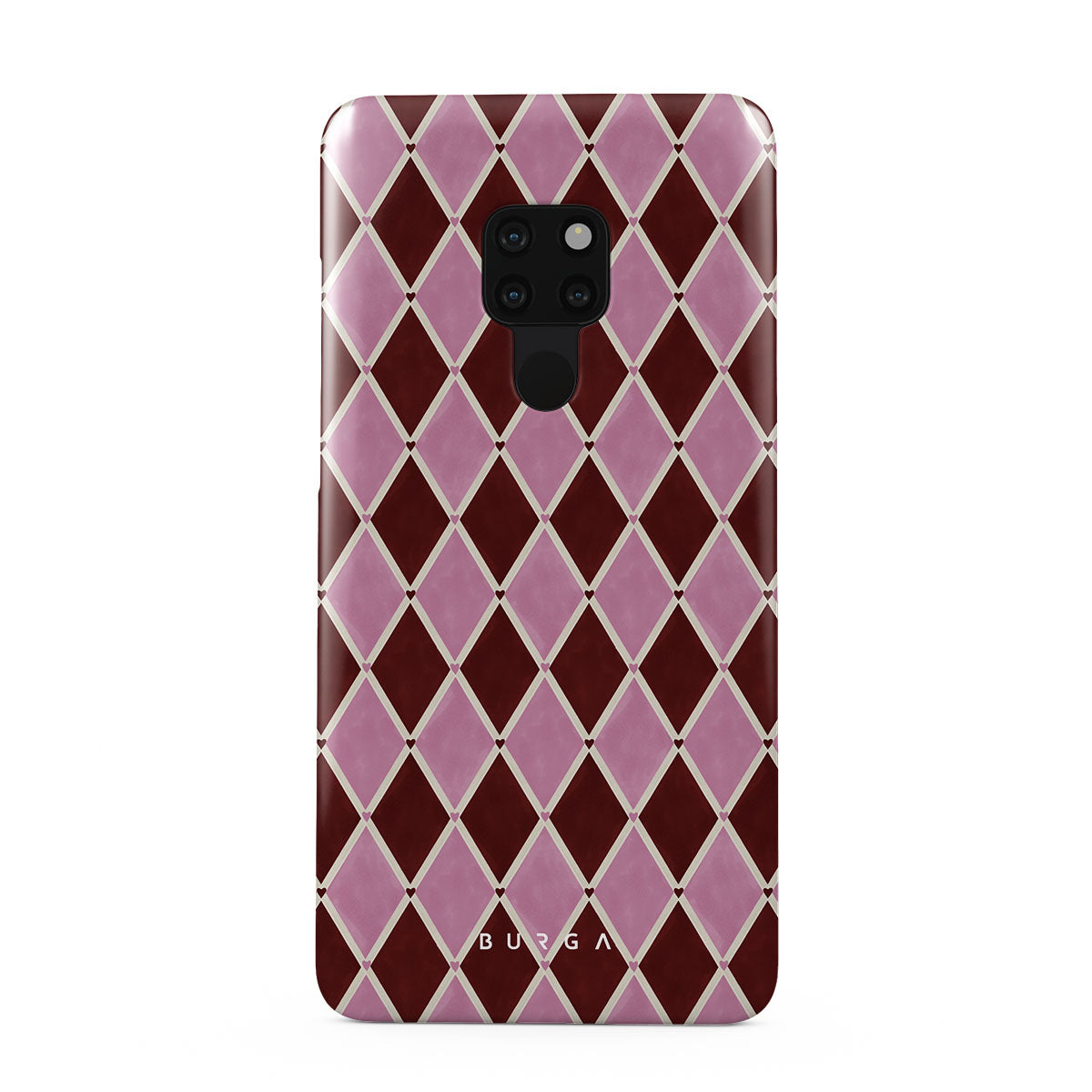 Den här stilen har: harlekinmönster, rosa diamanter, djupröd bakgrund