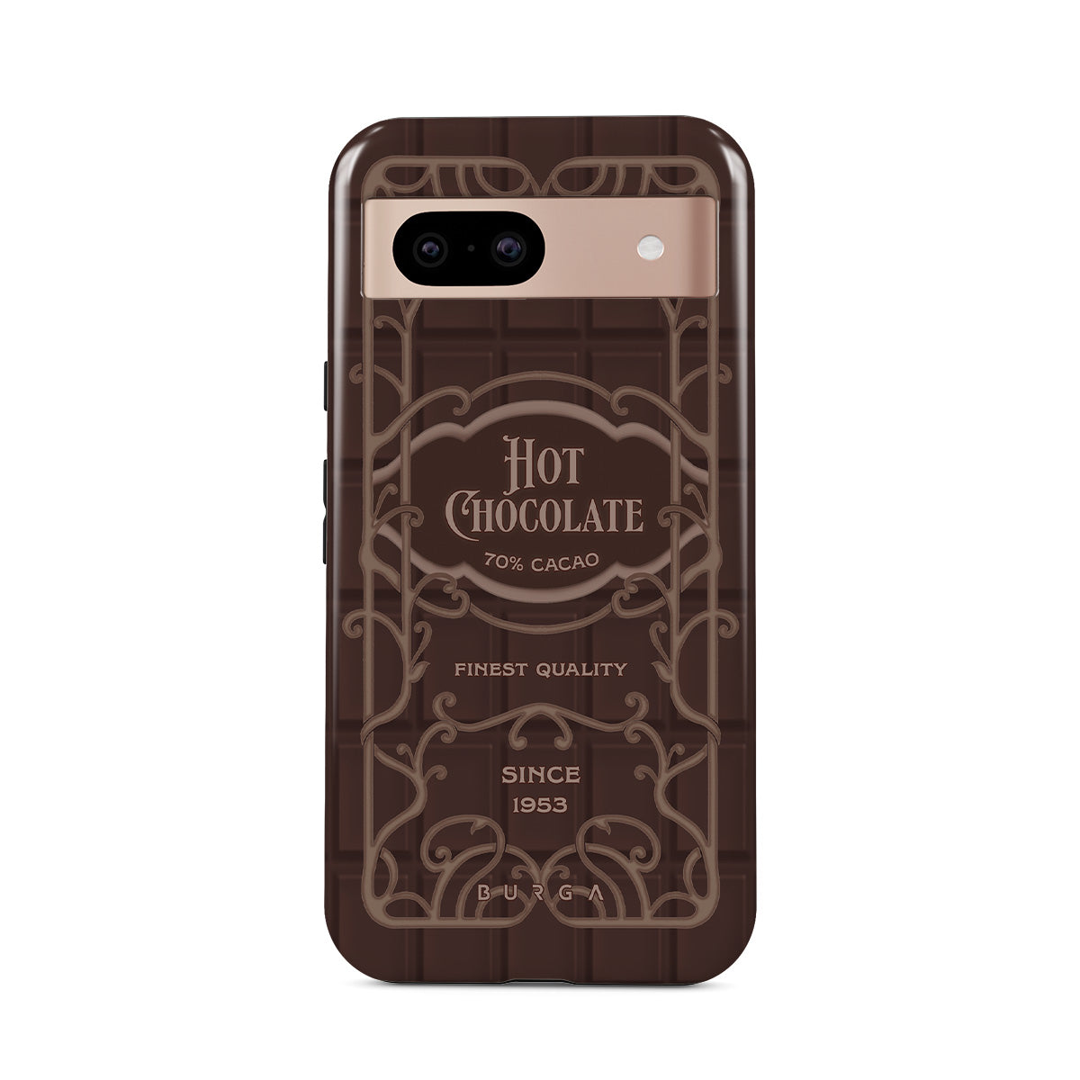 Denna design har: varm chokladetikett, brun chokladdesign, retro förpackningsstil
