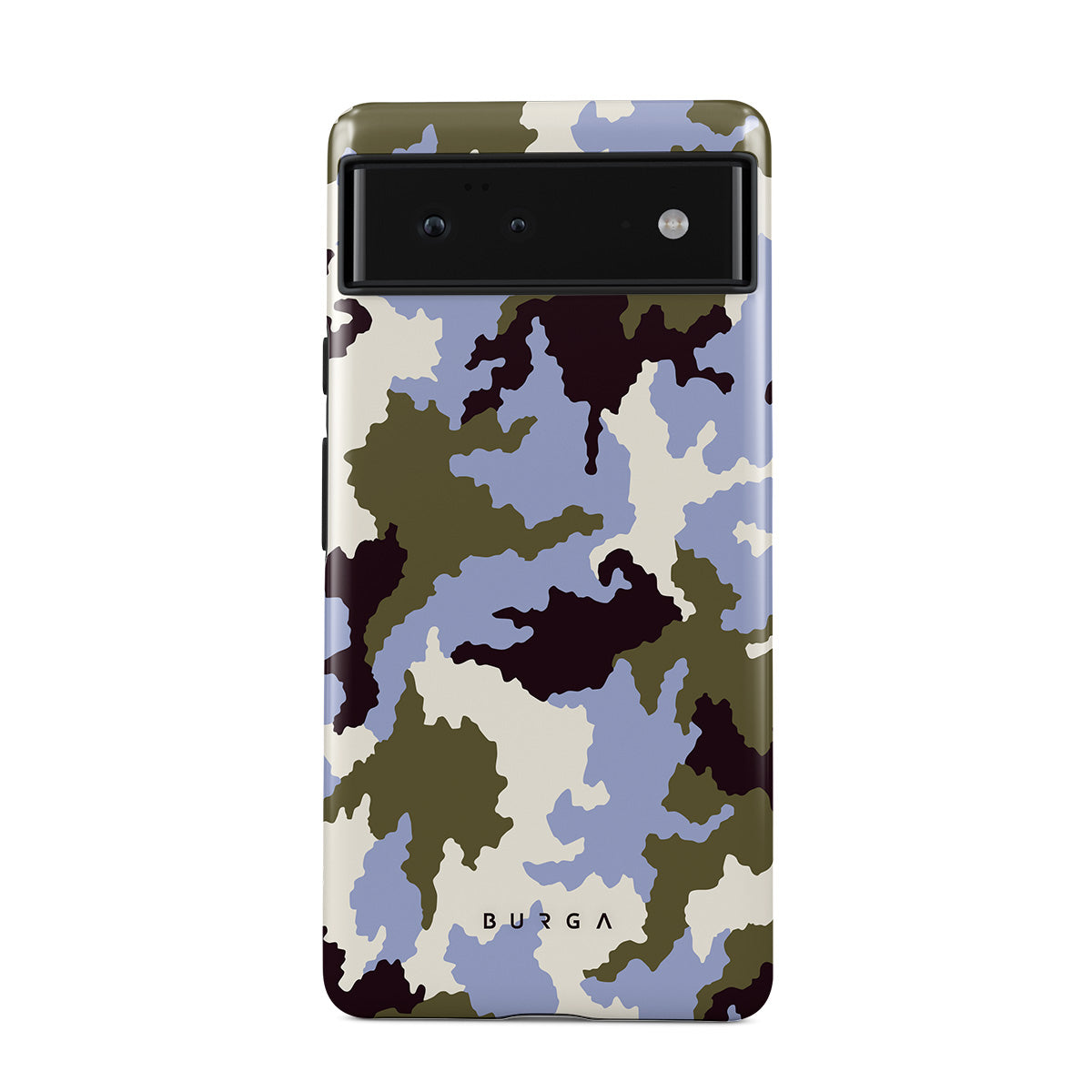 Denna design har: camouflage, grönt, blått, militärmönster, abstrakta former