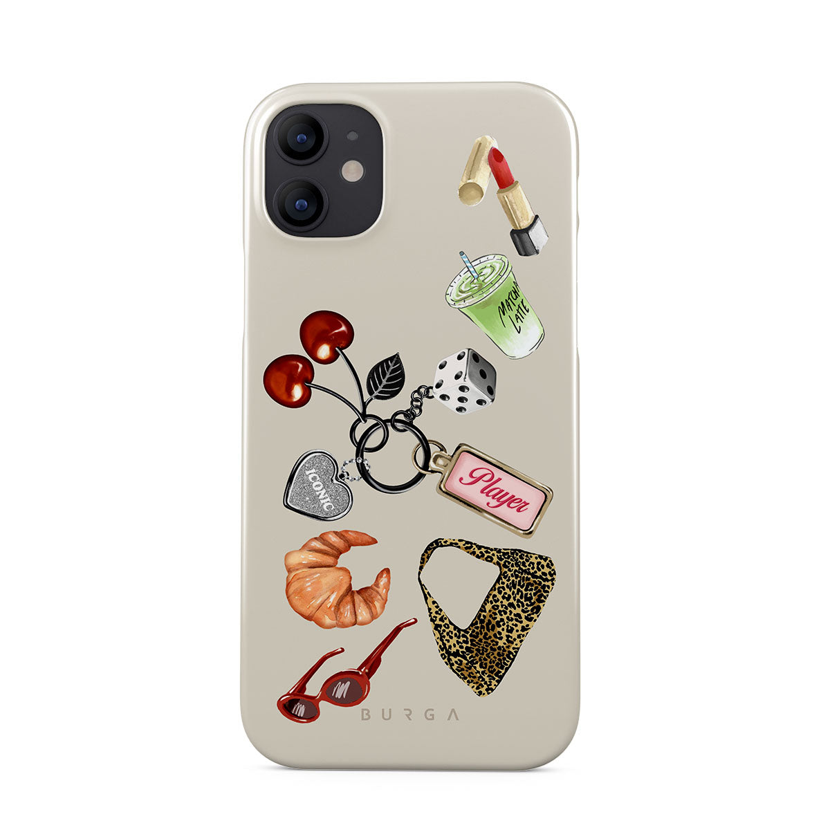 Den här stilen har: röda solglasögon, rött läppstift, grön matcha-dryck, croissant, svarta tärningar, leopardmönstrad väska, nyckelring med silverhjärta, körsbär, tärningar och "Player"-tag.