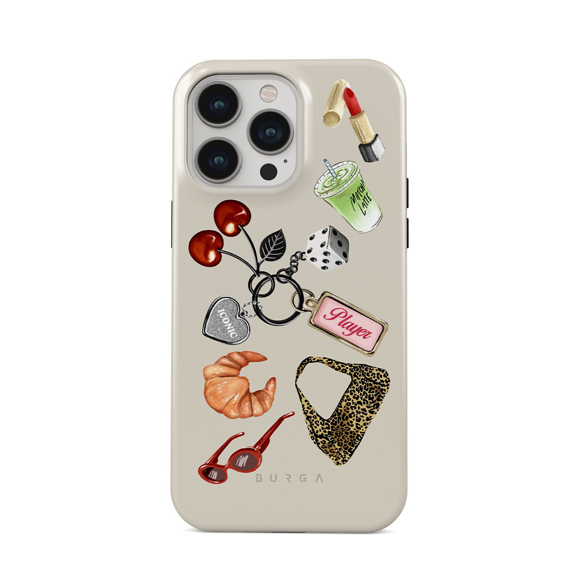 Den här stilen har: röda solglasögon, rött läppstift, grön matcha-dryck, croissant, svarta tärningar, leopardmönstrad väska, nyckelring med silverhjärta, körsbär, tärningar och "Player"-tag.