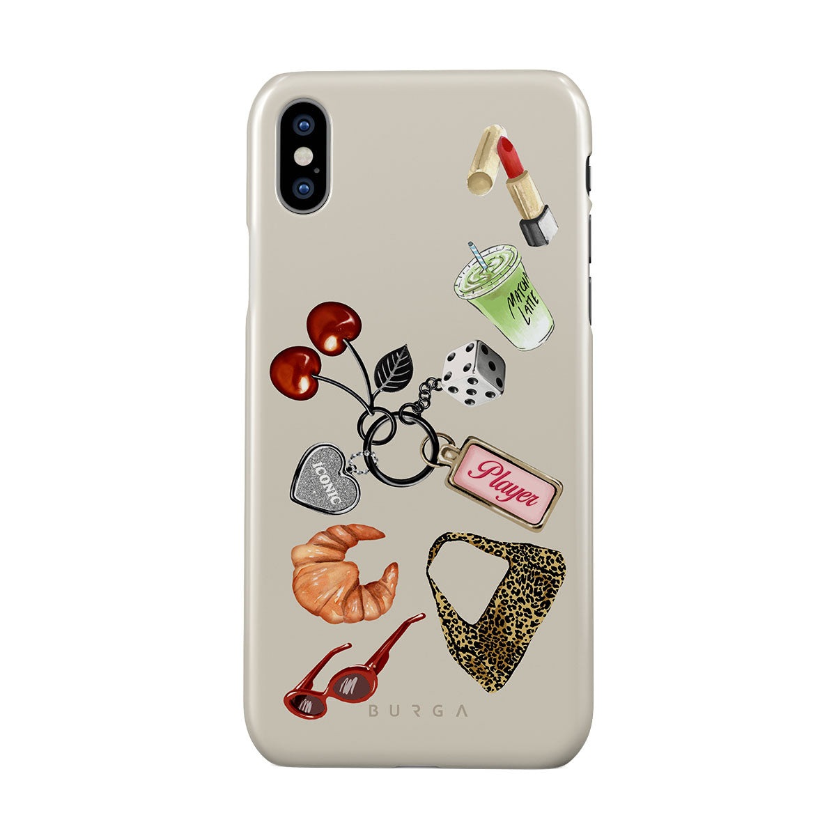 Den här stilen har: röda solglasögon, rött läppstift, grön matcha-dryck, croissant, svarta tärningar, leopardmönstrad väska, nyckelring med silverhjärta, körsbär, tärningar och "Player"-tag.