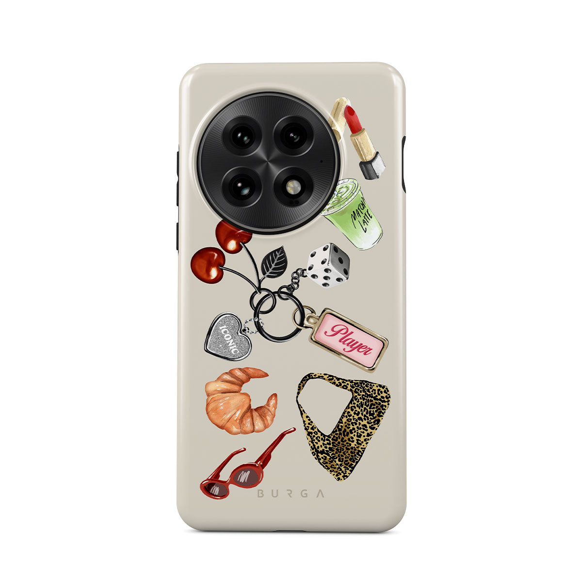 Den här stilen har: röda solglasögon, rött läppstift, grön matcha-dryck, croissant, svarta tärningar, leopardmönstrad väska, nyckelring med silverhjärta, körsbär, tärningar och "Player"-tag.