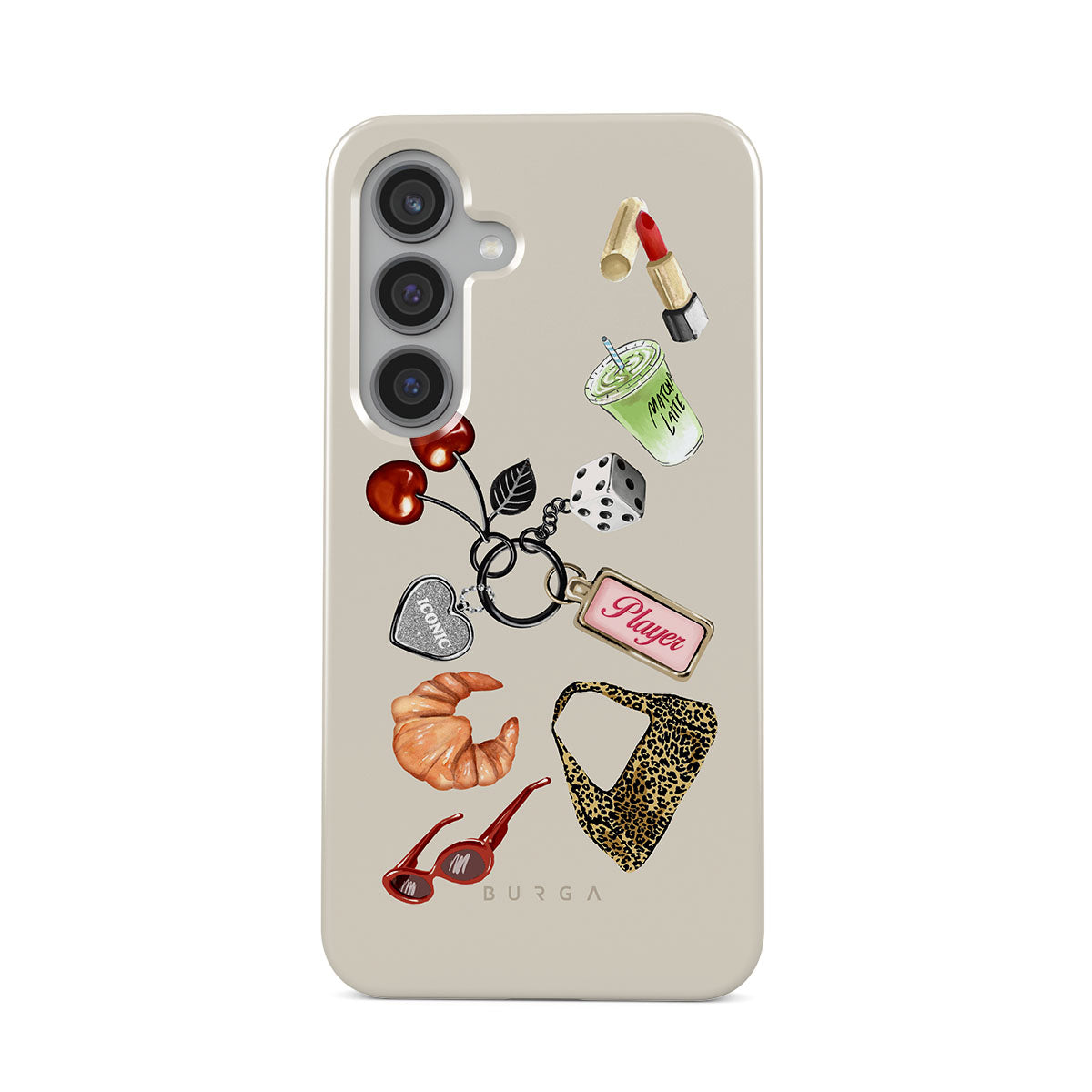 Den här stilen har: röda solglasögon, rött läppstift, grön matcha-dryck, croissant, svarta tärningar, leopardmönstrad väska, nyckelring med silverhjärta, körsbär, tärningar och "Player"-tag.
