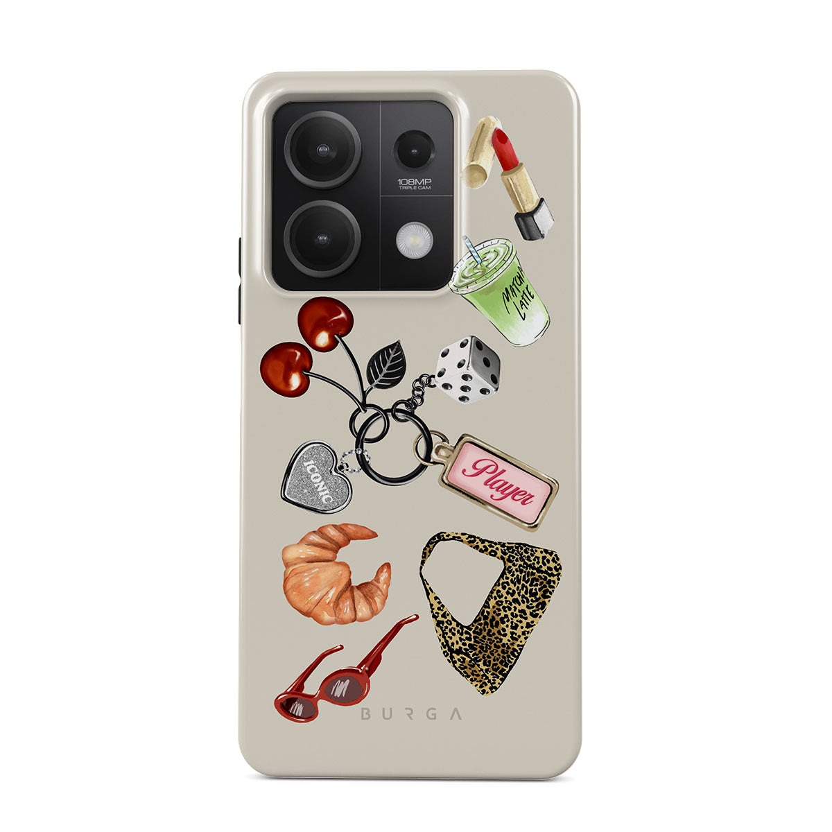 Den här stilen har: röda solglasögon, rött läppstift, grön matcha-dryck, croissant, svarta tärningar, leopardmönstrad väska, nyckelring med silverhjärta, körsbär, tärningar och "Player"-tag.