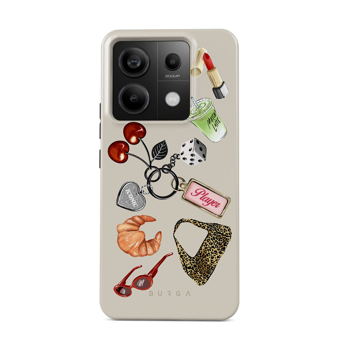 Den här stilen har: röda solglasögon, rött läppstift, grön matcha-dryck, croissant, svarta tärningar, leopardmönstrad väska, nyckelring med silverhjärta, körsbär, tärningar och "Player"-tag.