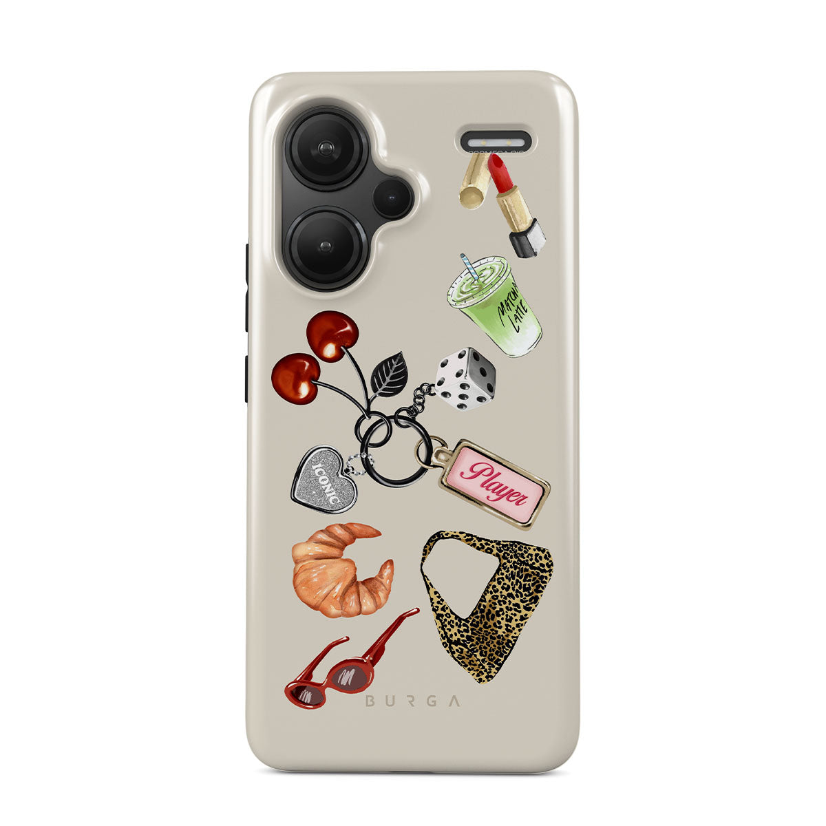 Den här stilen har: röda solglasögon, rött läppstift, grön matcha-dryck, croissant, svarta tärningar, leopardmönstrad väska, nyckelring med silverhjärta, körsbär, tärningar och "Player"-tag.