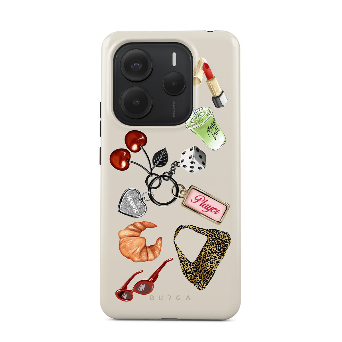 Den här stilen har: röda solglasögon, rött läppstift, grön matcha-dryck, croissant, svarta tärningar, leopardmönstrad väska, nyckelring med silverhjärta, körsbär, tärningar och "Player"-tag.
