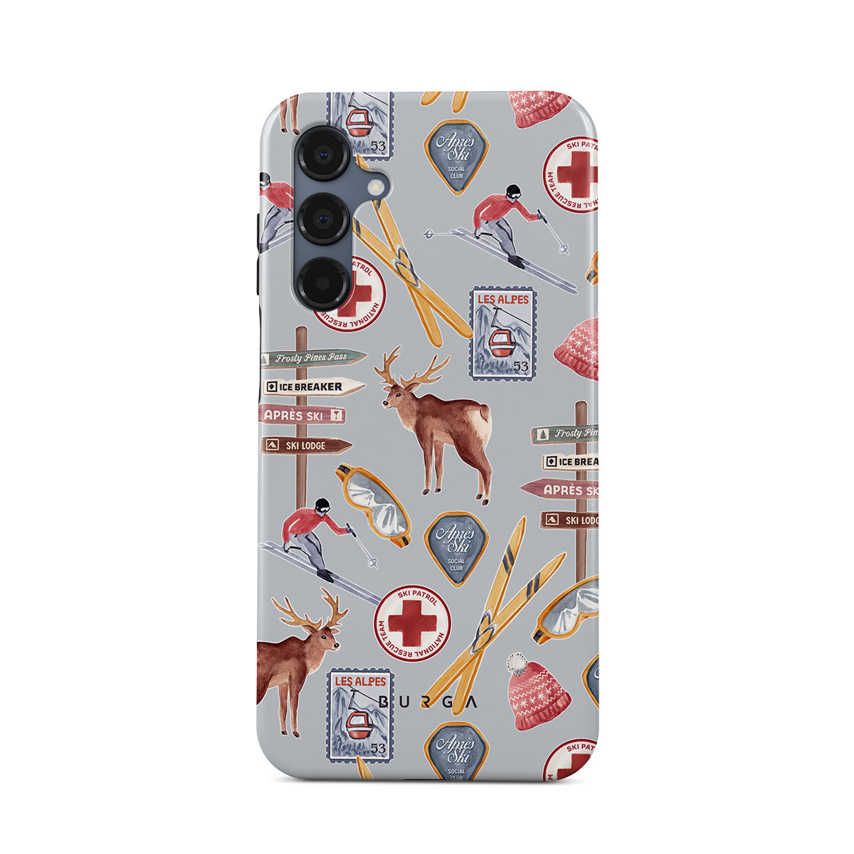 Denna design har: vintage skidaffisch, retro skidort, renillustration, skidlift design, alpinmönster, vintersport, klassisk skidstuga stil, bergresort grafik