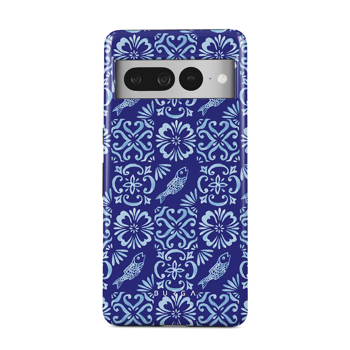 Den här stilen har: portugisiska kakelmönster, djupa blå färger, blommönster, blommor, fiskar