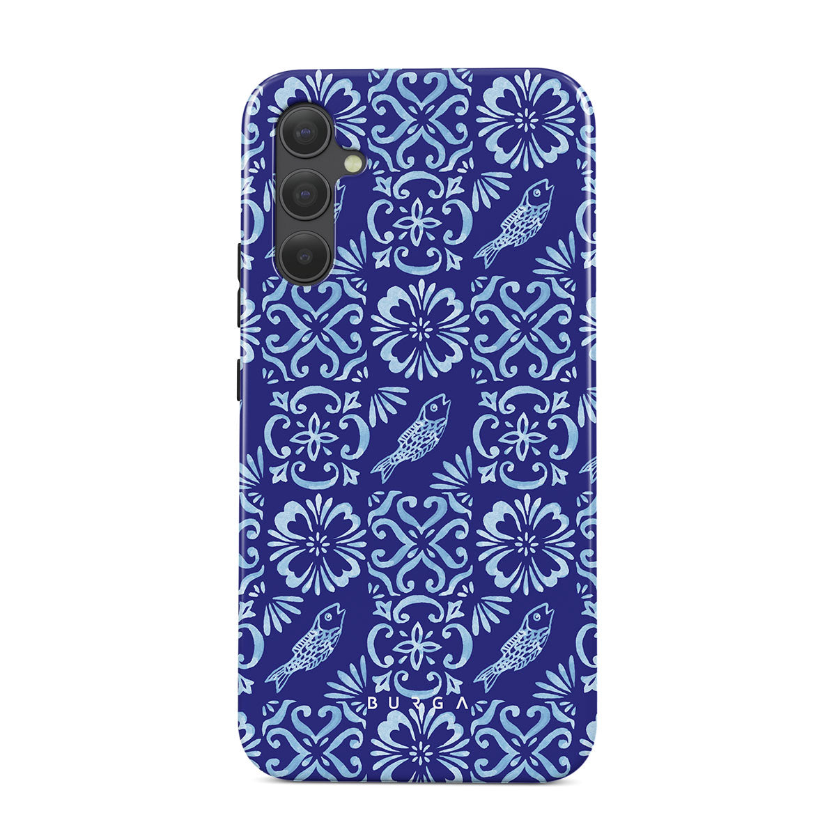 Den här stilen har: portugisiska kakelmönster, djupa blå färger, blommönster, blommor, fiskar