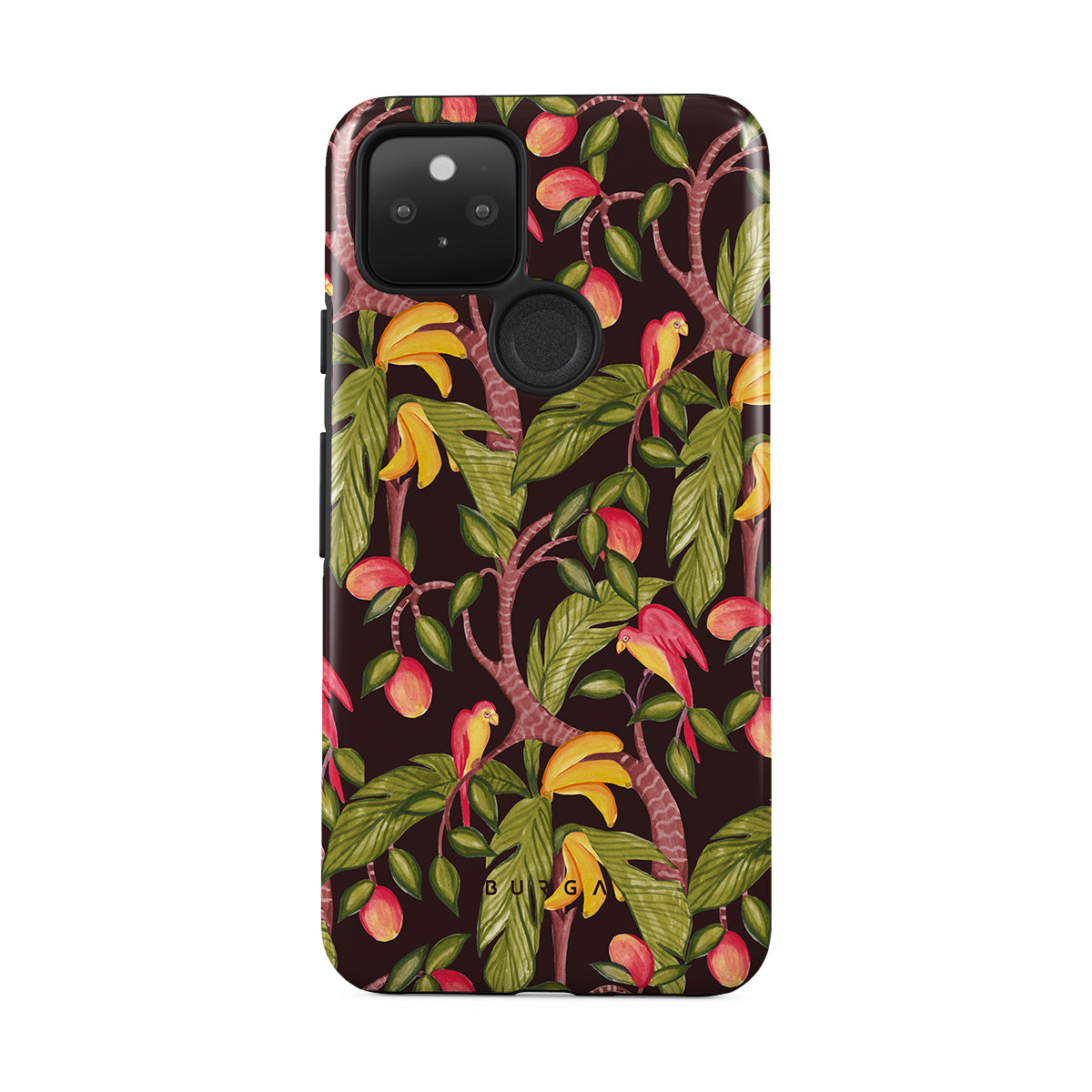 Den här stilen har: mango, mörkgröna blad, mönster inspirerat av djungeln