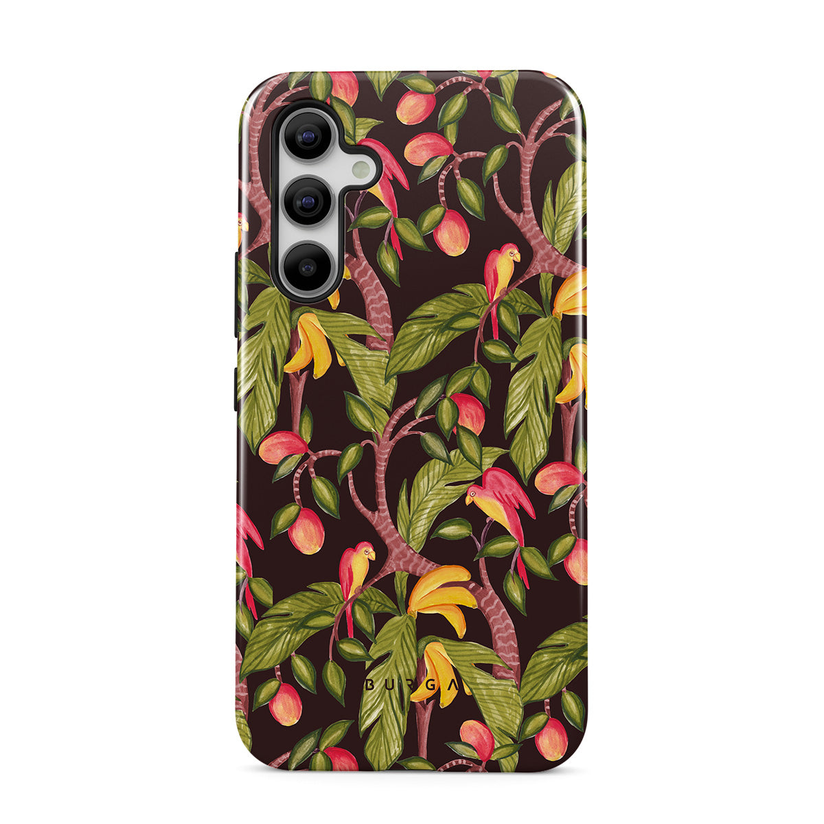 Den här stilen har: mango, mörkgröna blad, mönster inspirerat av djungeln