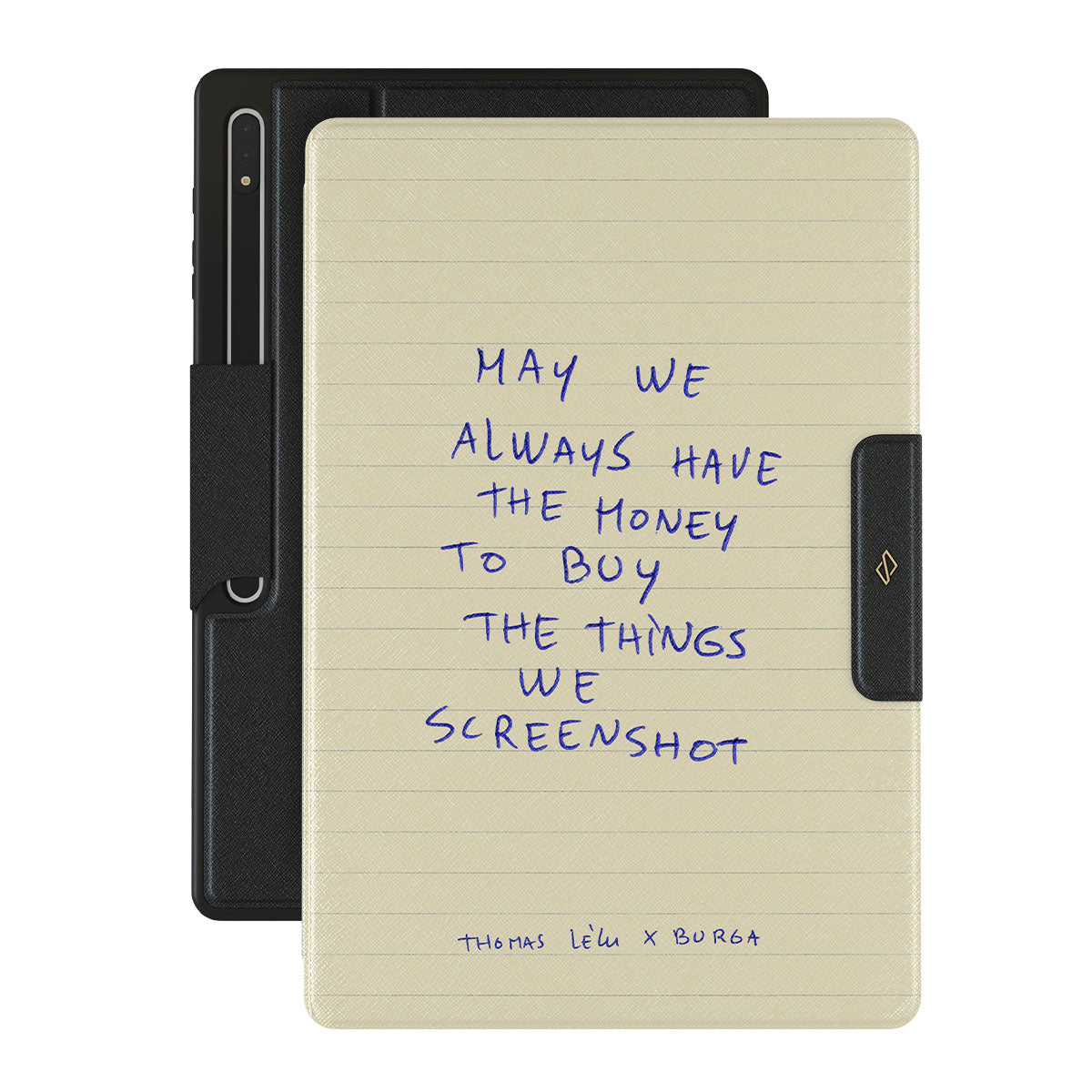 Inbyggd S-pen hållare. • Utsida i veganskt Saffiano läder.