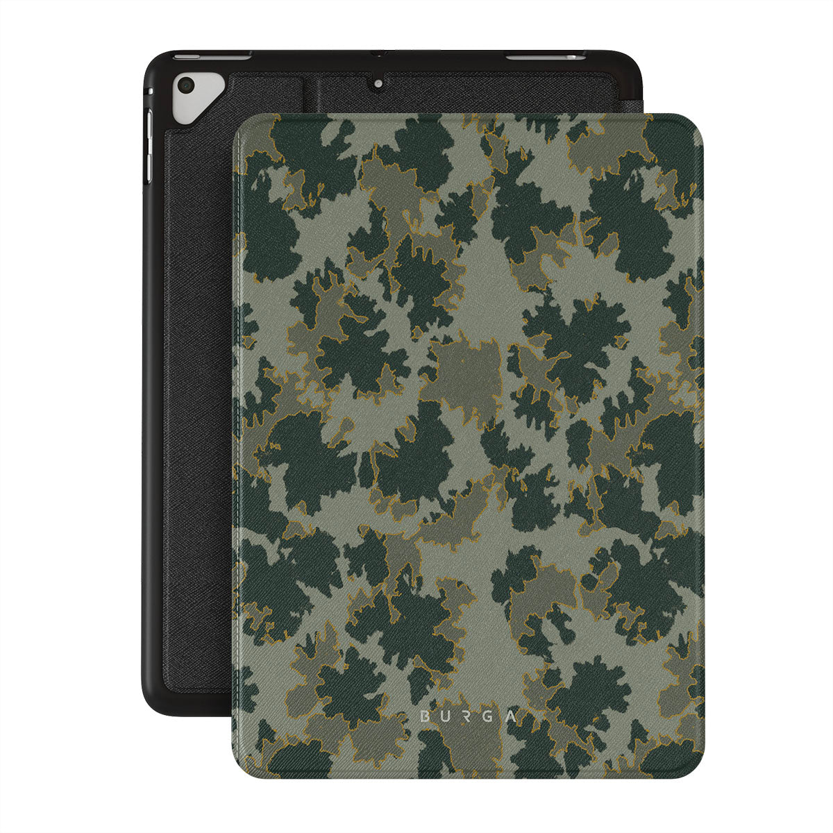 Denna design har: grön kamouflage, naturligt mönster, militärinspirerat mönster
