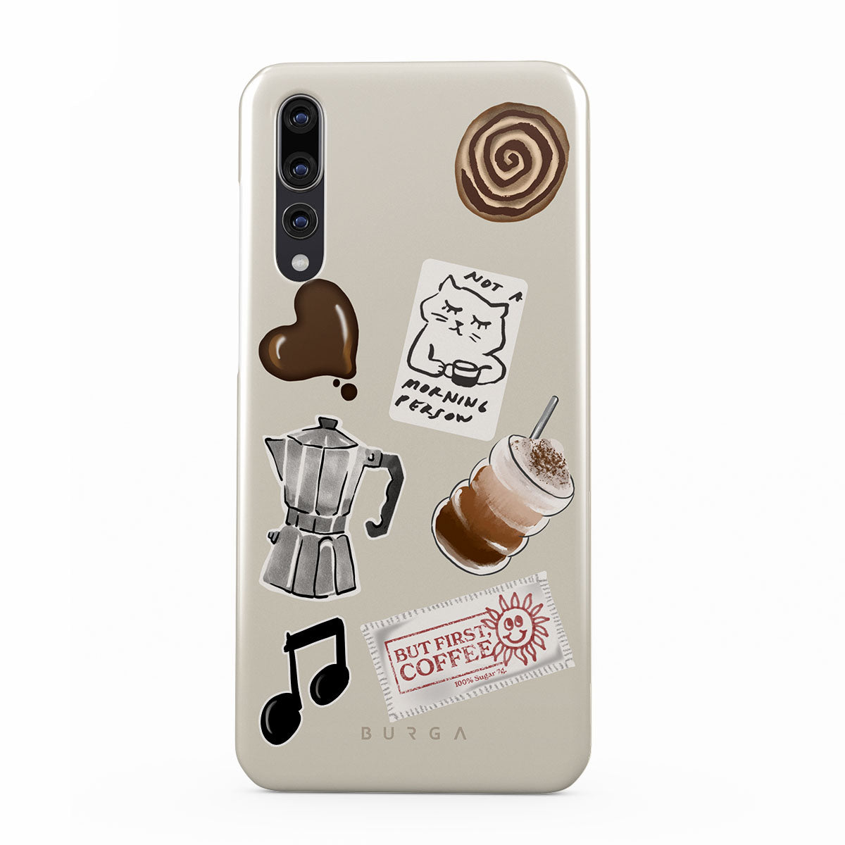 Den här stilen har: mokabryggare, frappé, kanelbulle, chokladhjärta, klistermärke "Not a morning person", kvitto "But First, Coffee", musiknot.